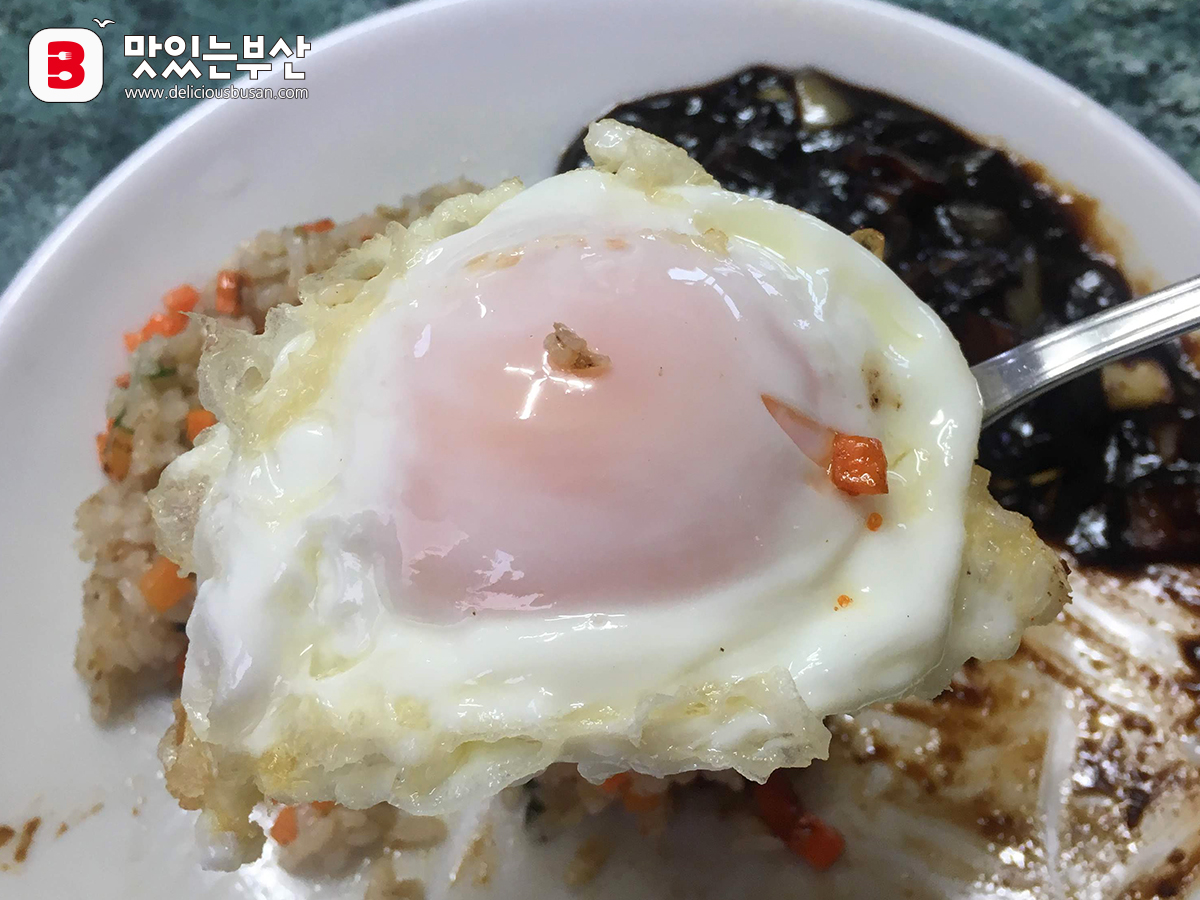 볶음밥 위에 올라간 계란후라이는 반숙이다.