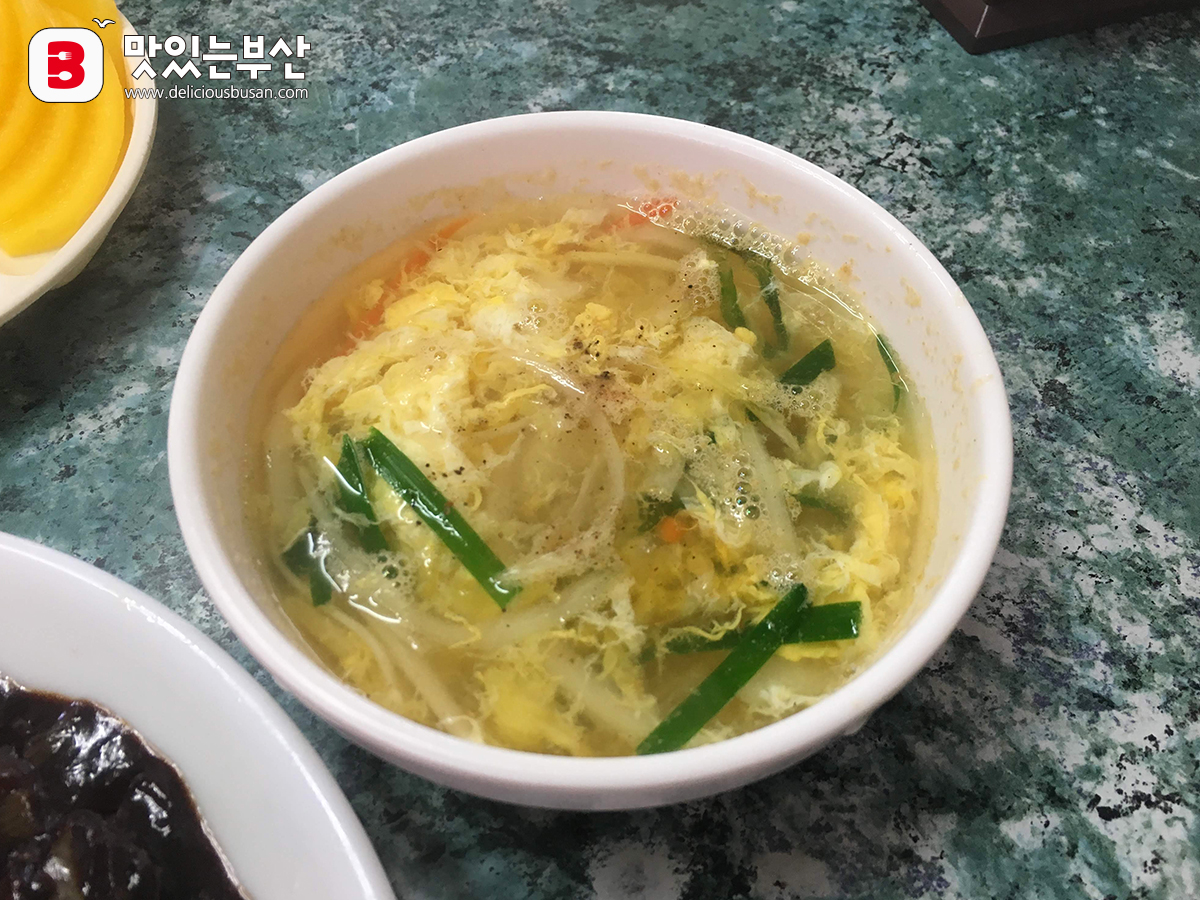그 옆으로 짜장소스도 놓여있고, 계란국과 김치도 준다.