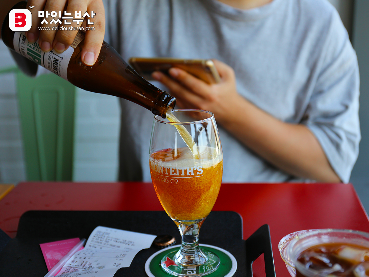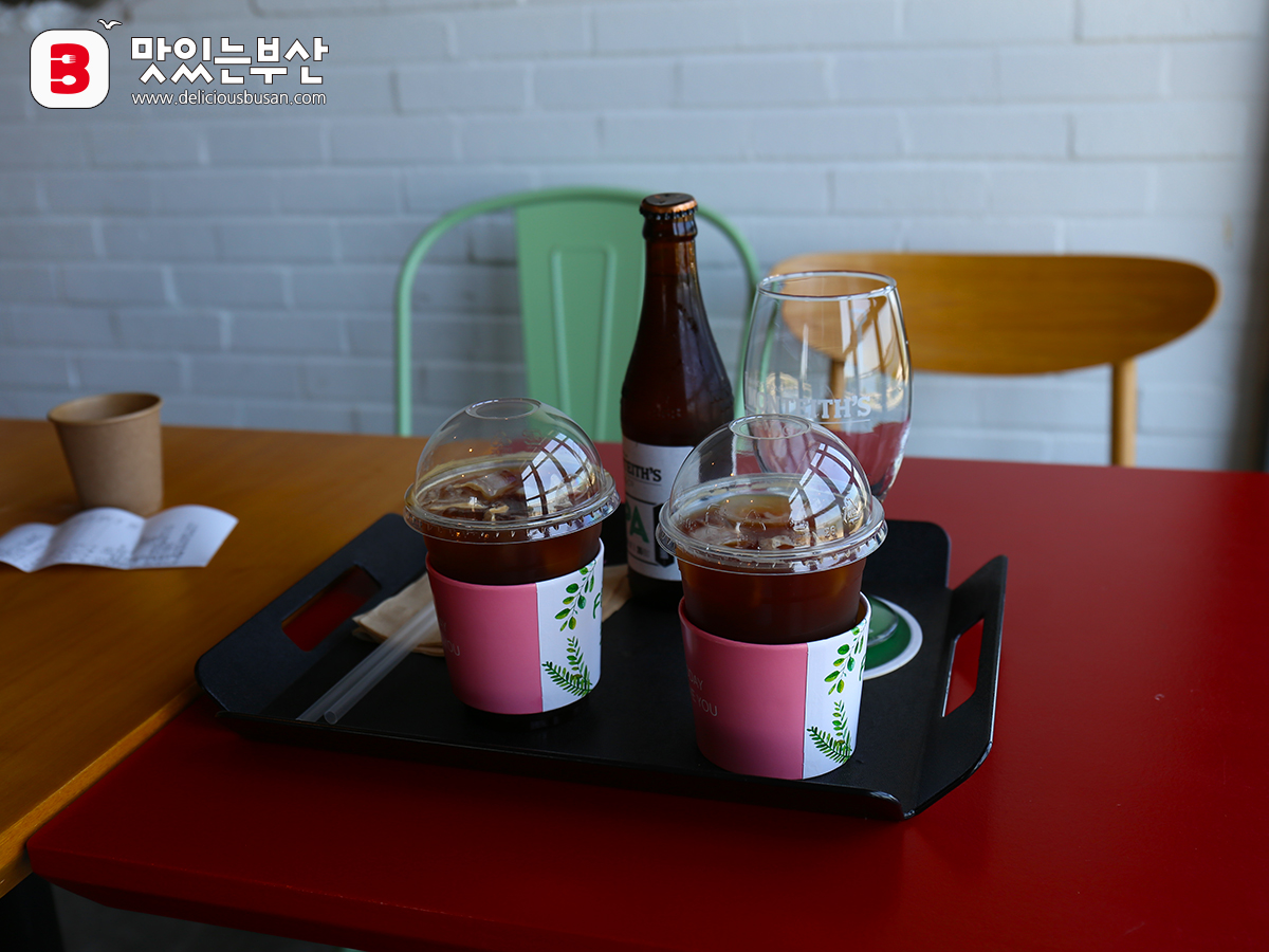 그래서 IPA맥주 한 병과 시원한 아이스아메리카노 두 잔을 주문해 2층에 자리를 잡았다.