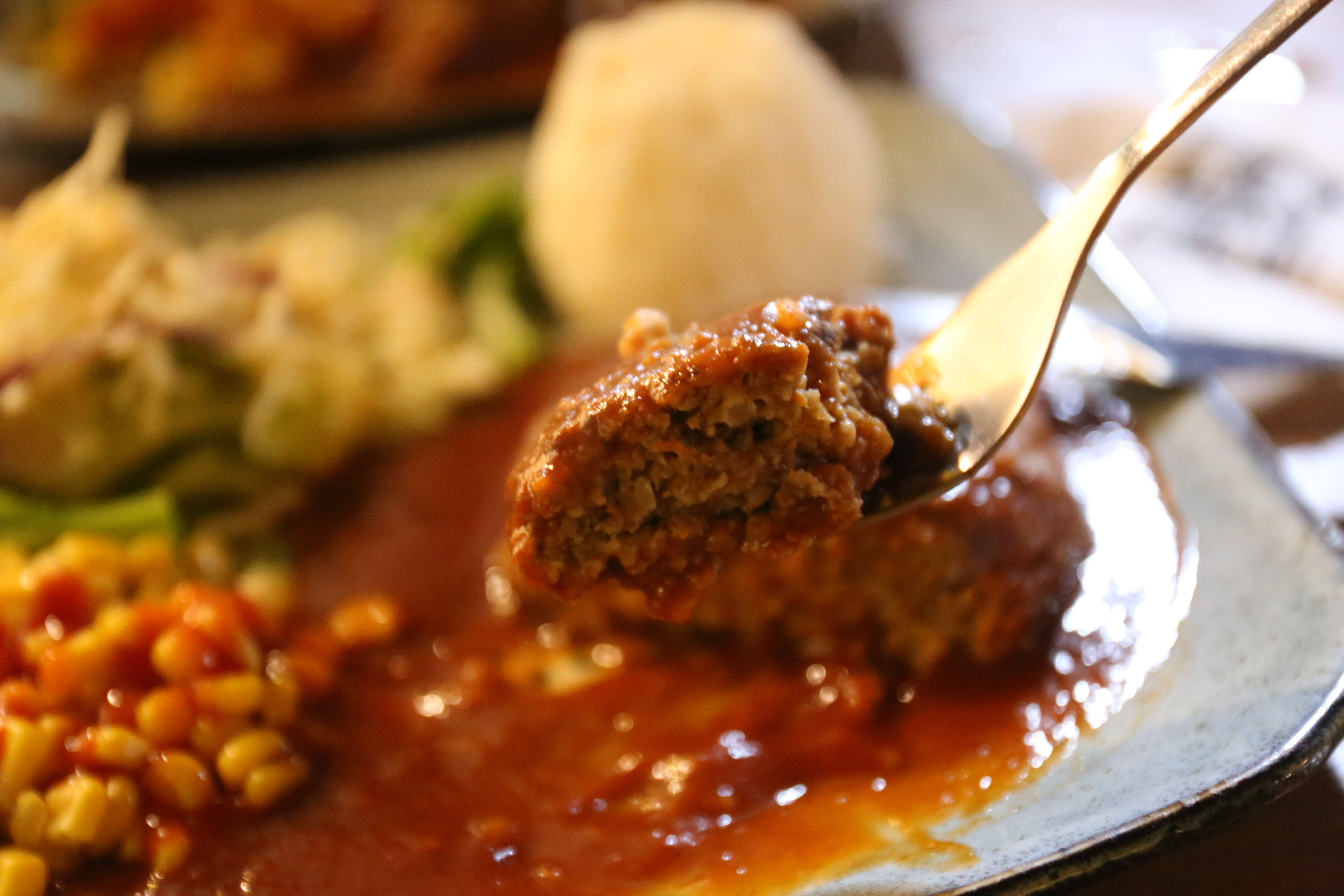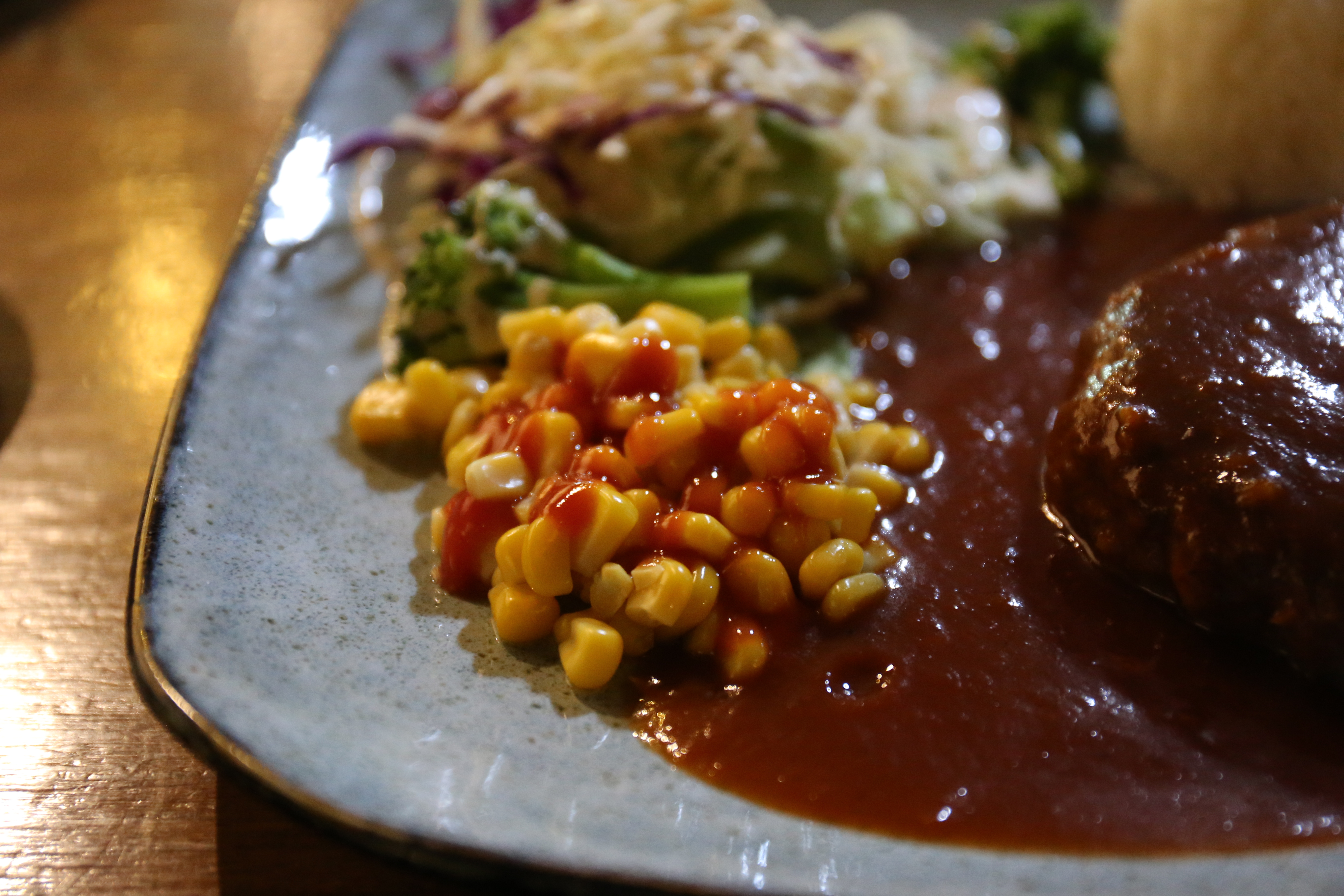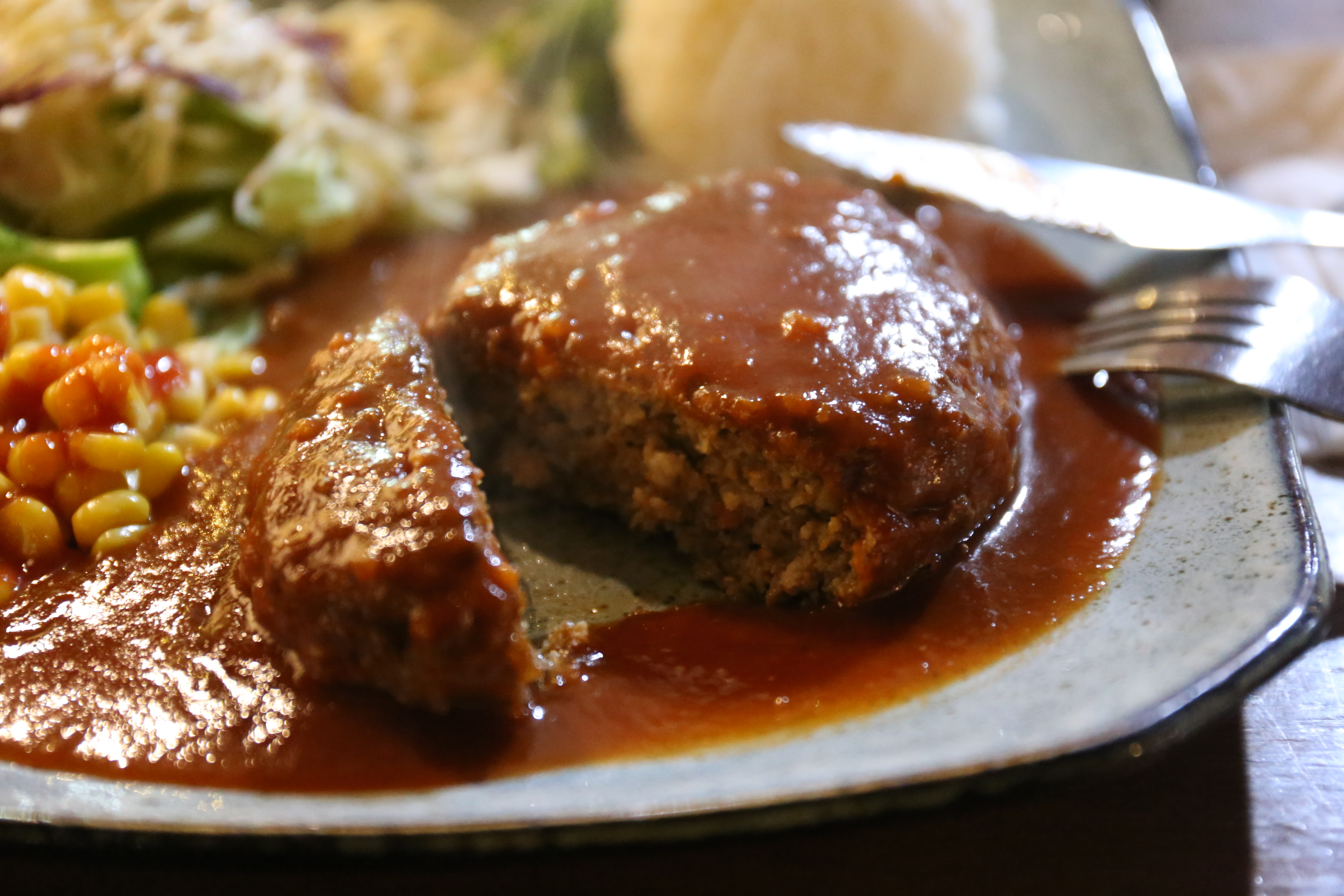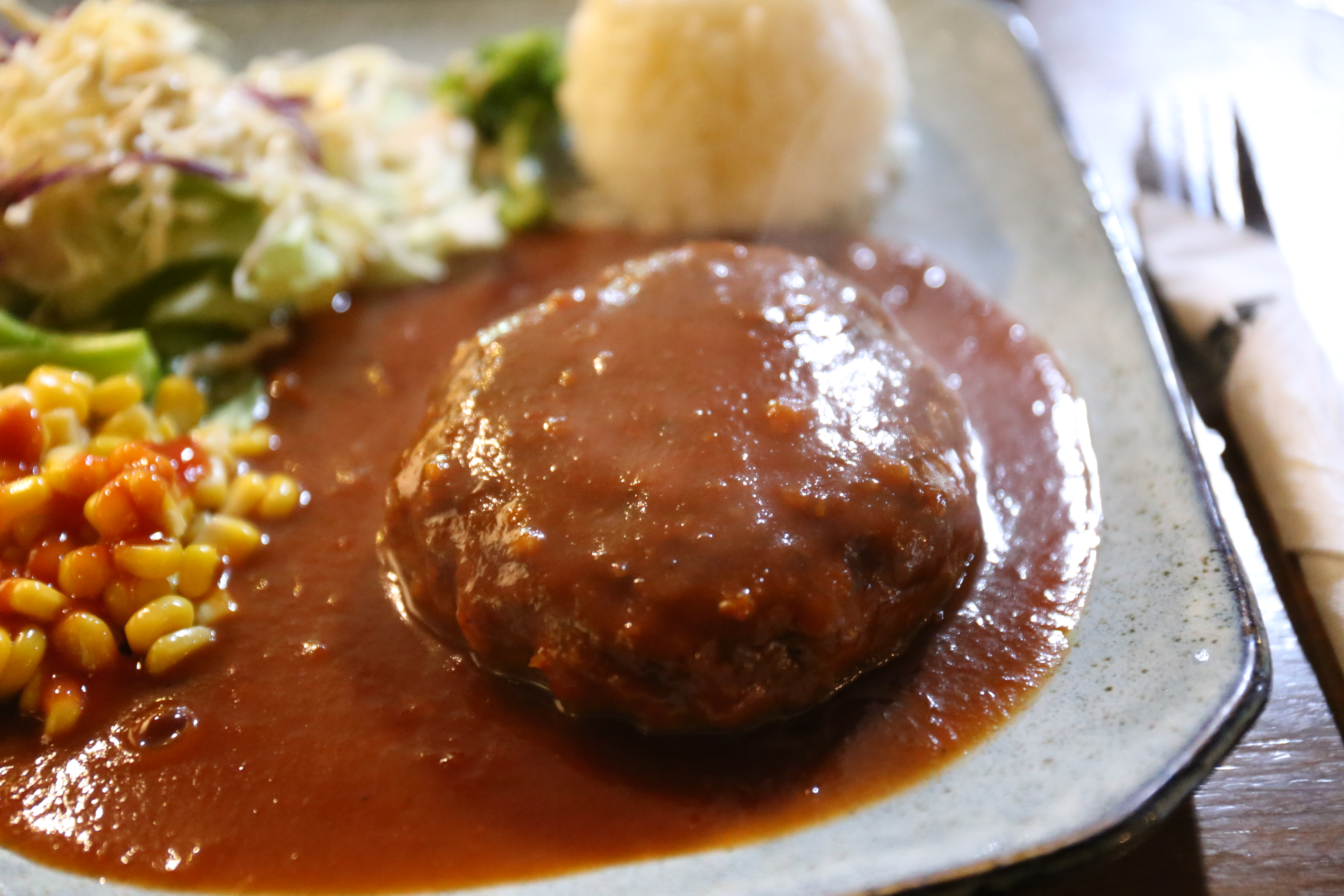 도톰한 함박스테이크 위에 뿌려진 소스는 상큼하다.