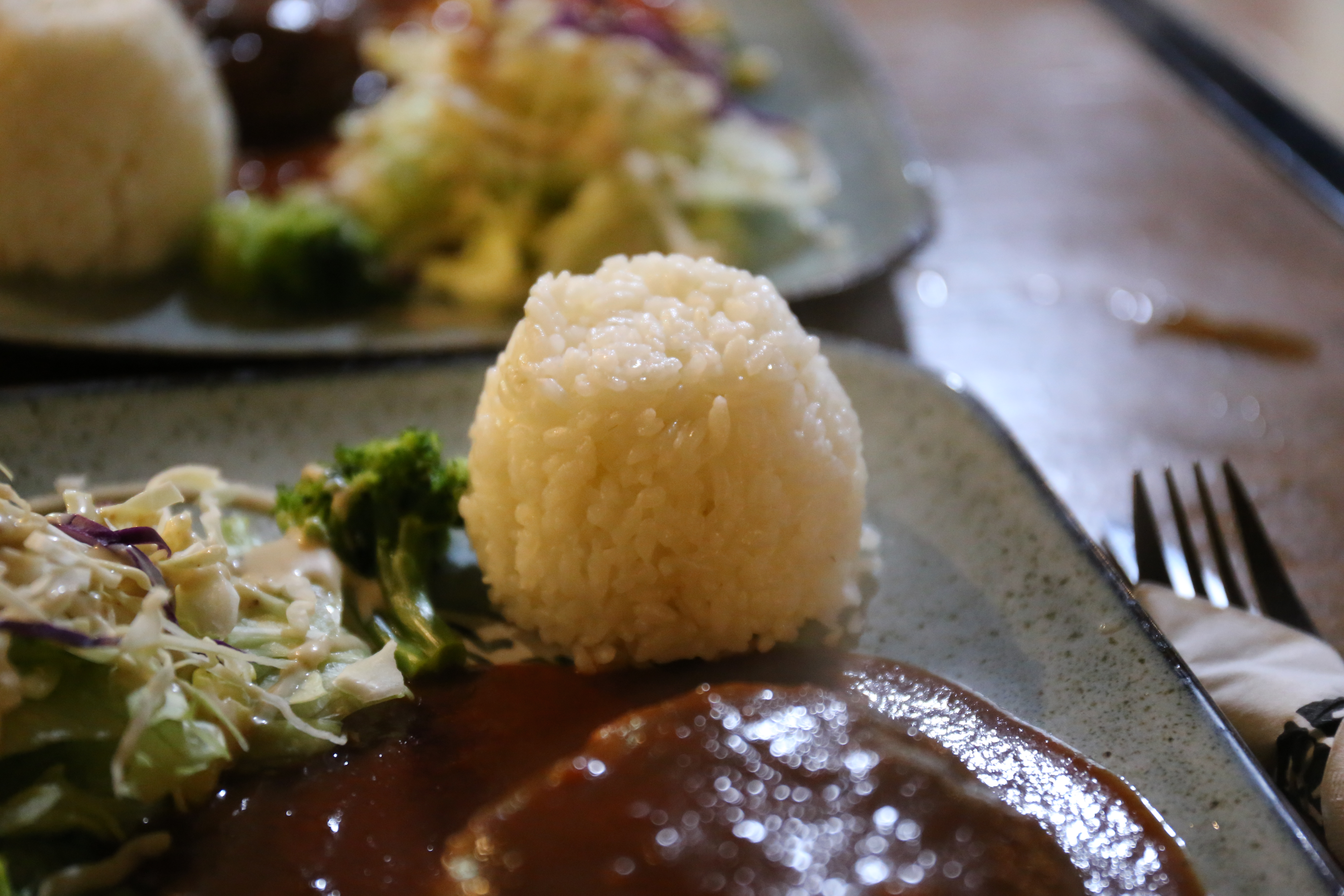 식사메뉴는 함박스테이크와 연밥이 있다.