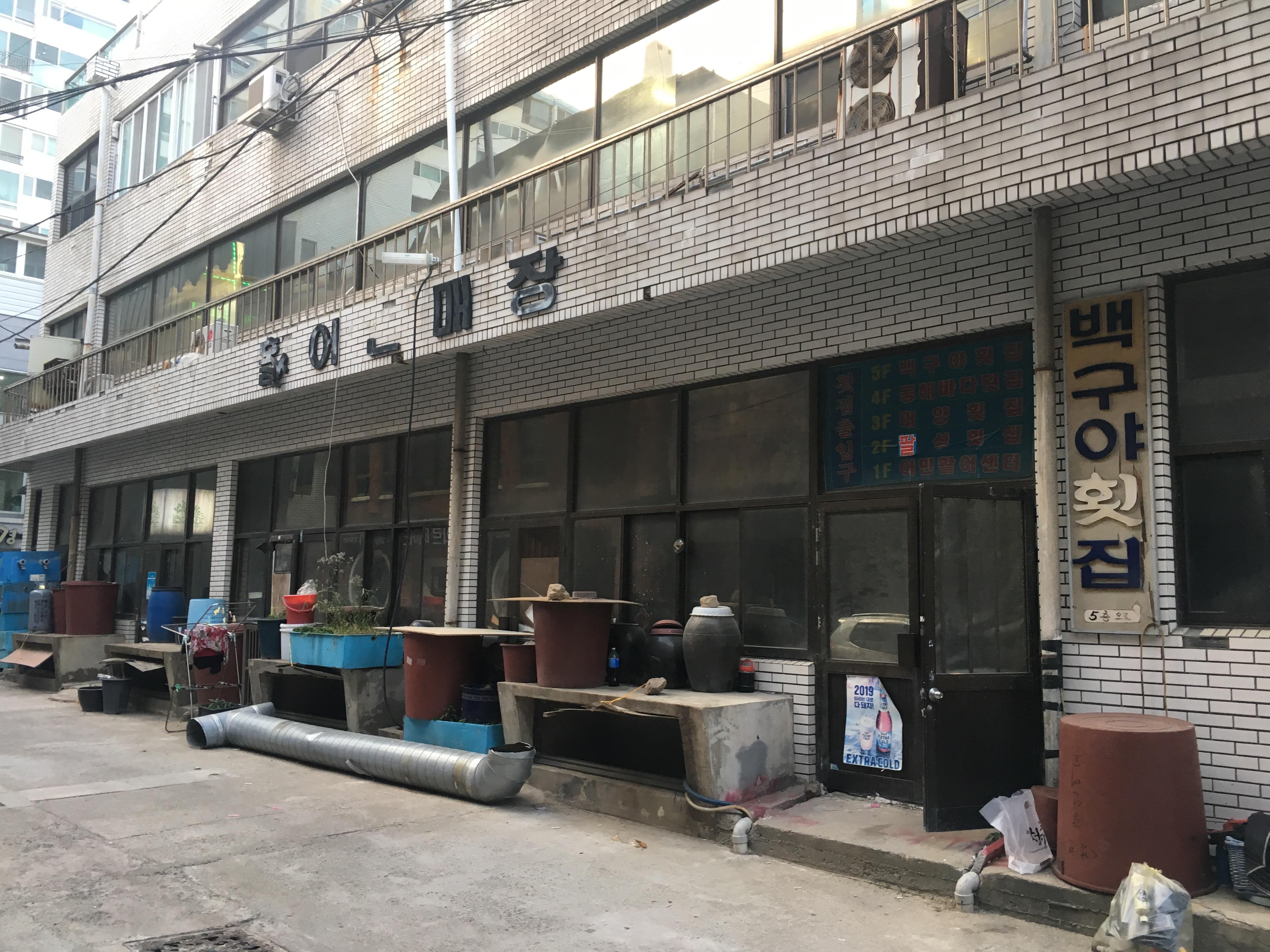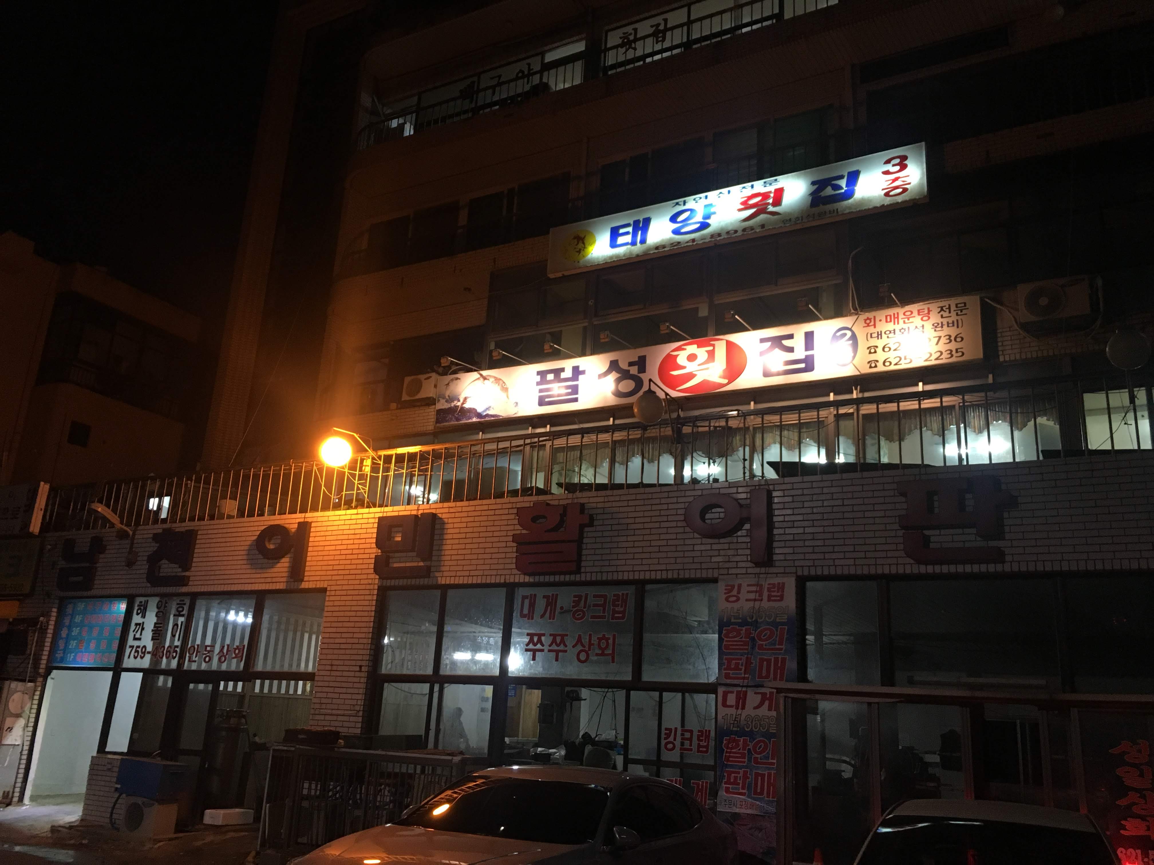 이 곳 2층에는 팔성횟집, 3층에는 태양횟집이 자리잡고 있다.