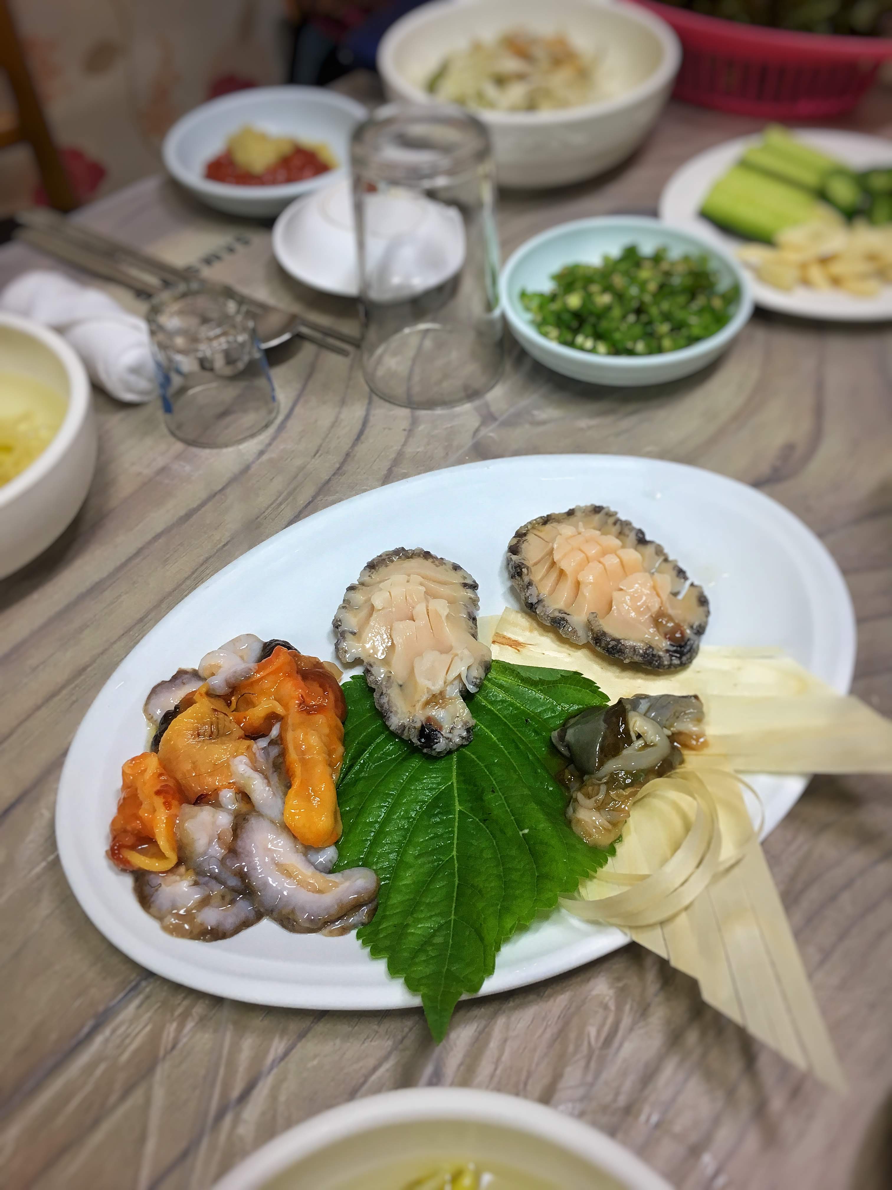 싱싱한 해물, 특히 멍게가 제철이라 좋다.