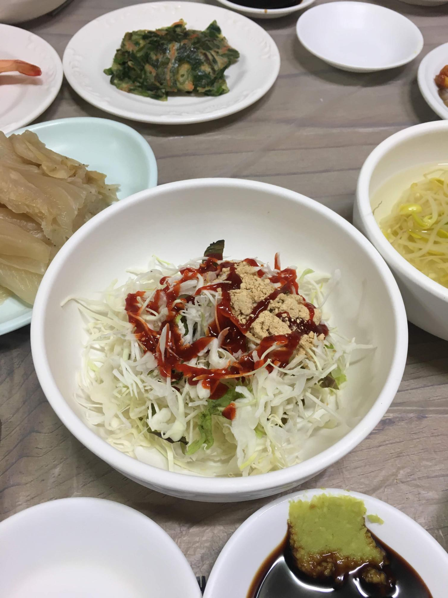 이런 양배추샐러드를 내어주는 집을 보면 어릴 때 부모님을 따라 갔던 횟집들의 모습이 어렴풋이 떠오르기도 한다.