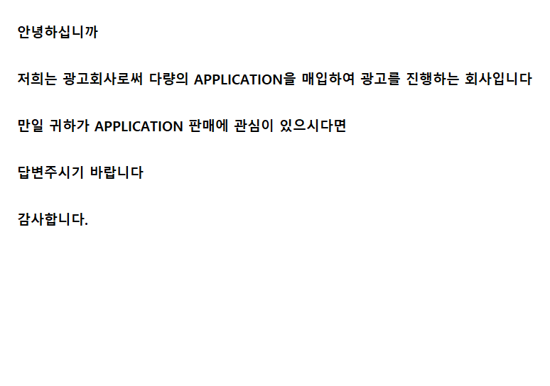 "안녕하십니까 귀하의 애플리케이션을 사고싶습니다"