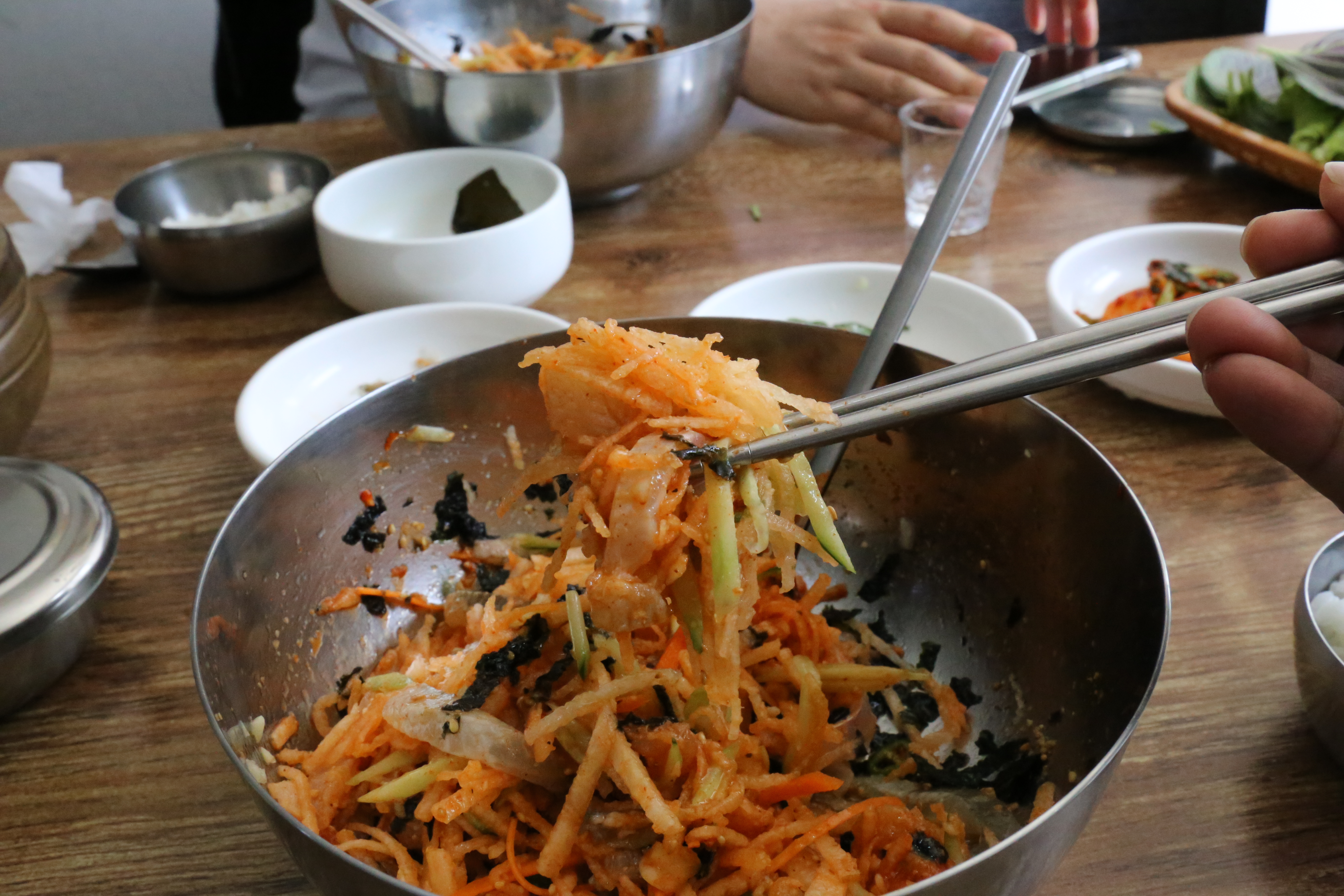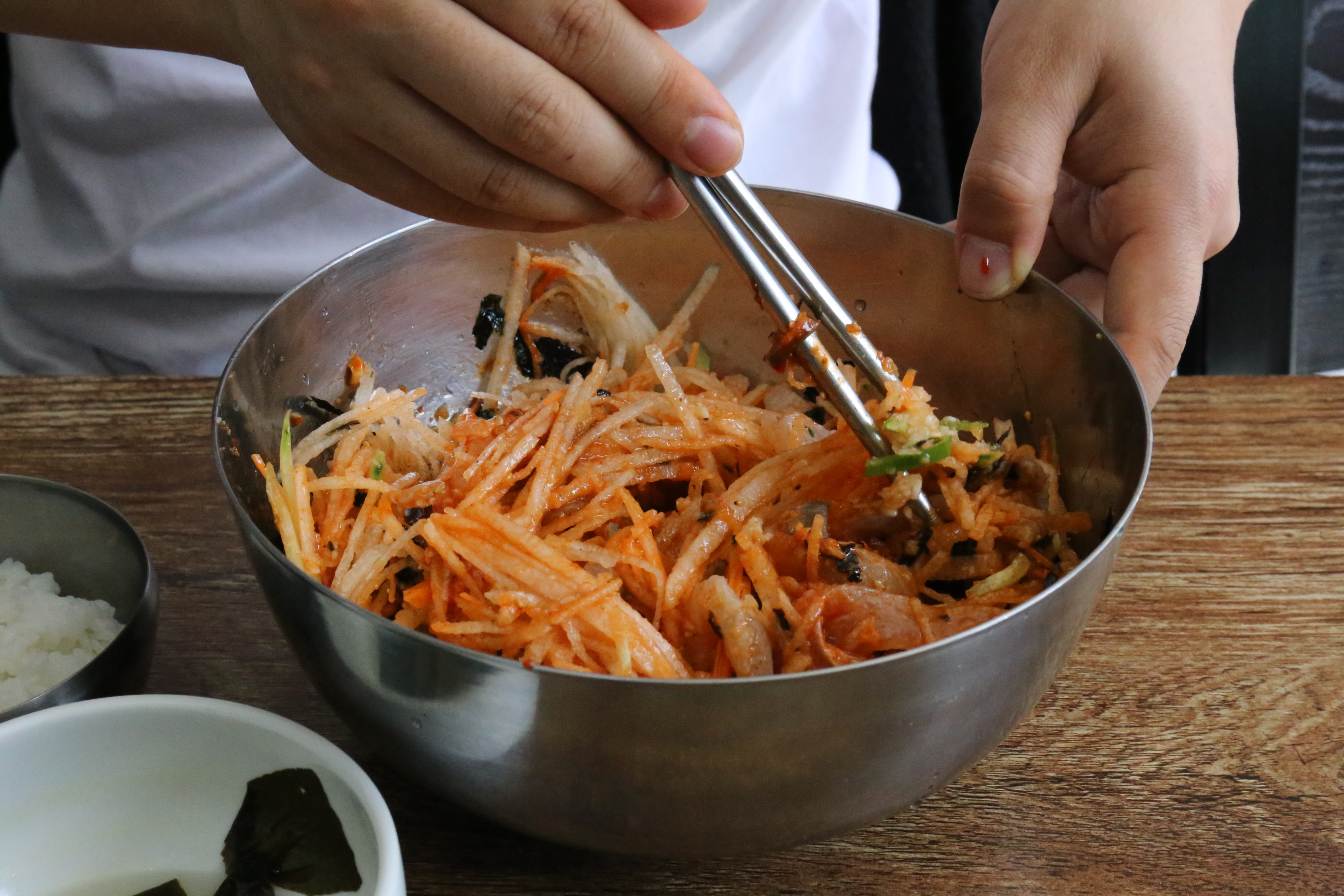 쓱삭쓱삭 맛깔나게 비벼준다.
