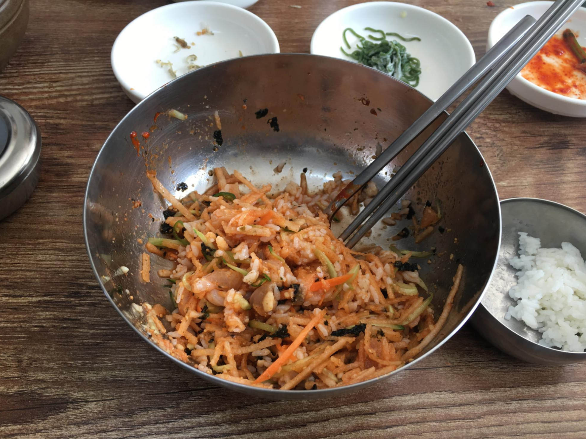 밥이 식은 후 남은 물회와 비빌 때 물을 부어서 먹어도 맛이 괜찮다고 한다.