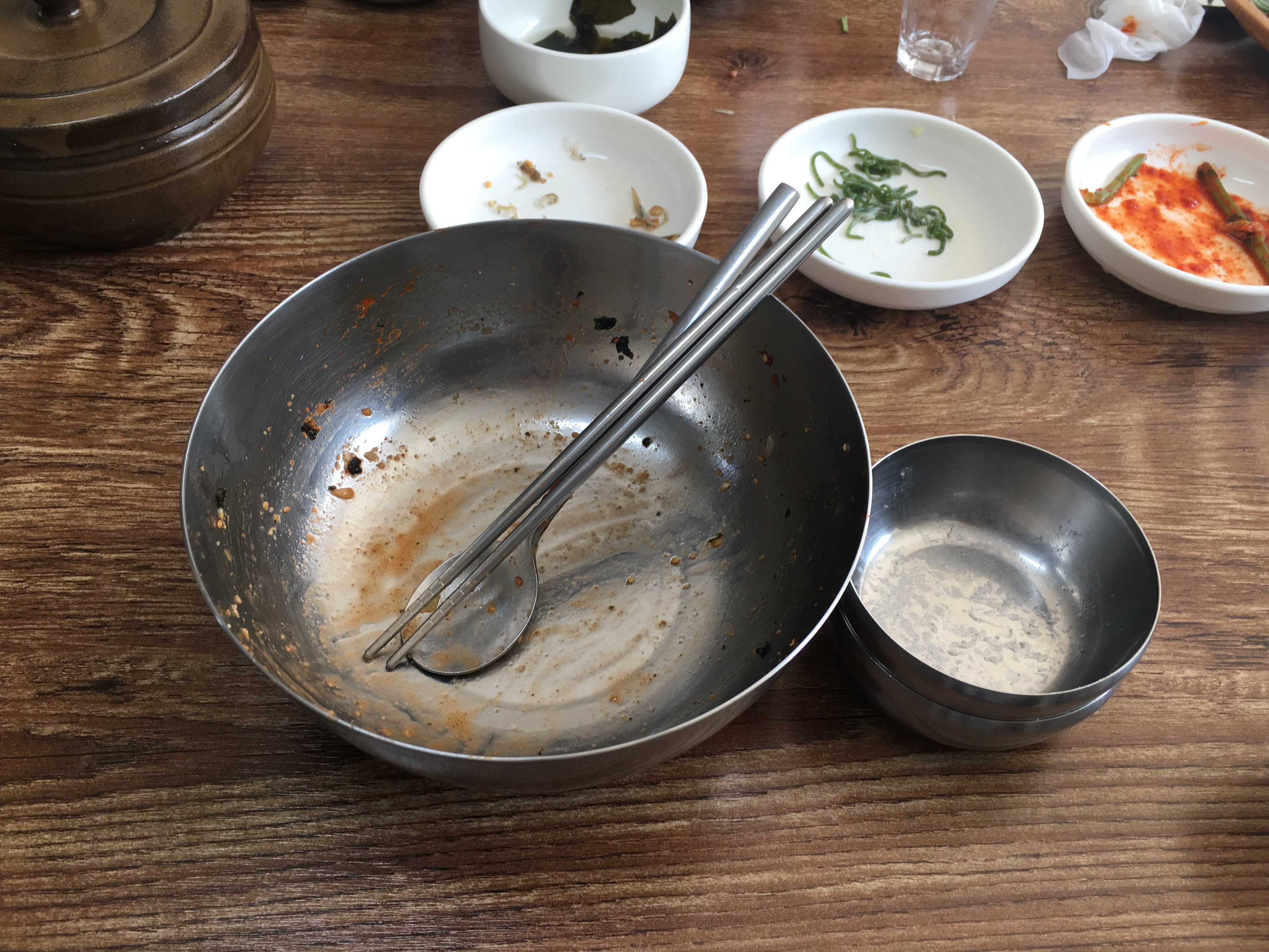 처음 받은 공깃밥은 물회와 찬들을 곁들여 거의 다 먹었고,