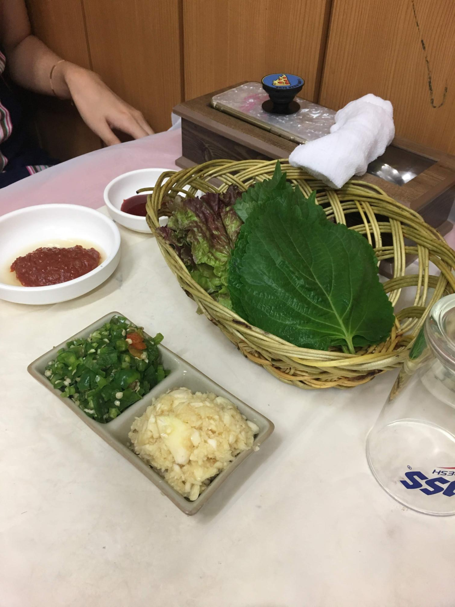 상추 위에 깻잎 한장 깔고 전어랑 쌈장이랑 올리고 한 입.