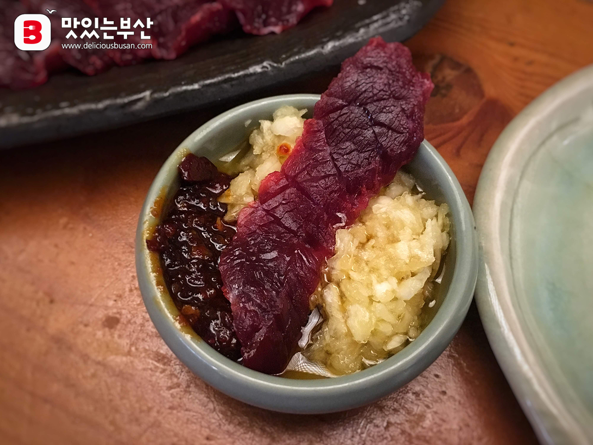 쫀쫀하고 차진 식감의 생고기가 뭉티기 못지않다.