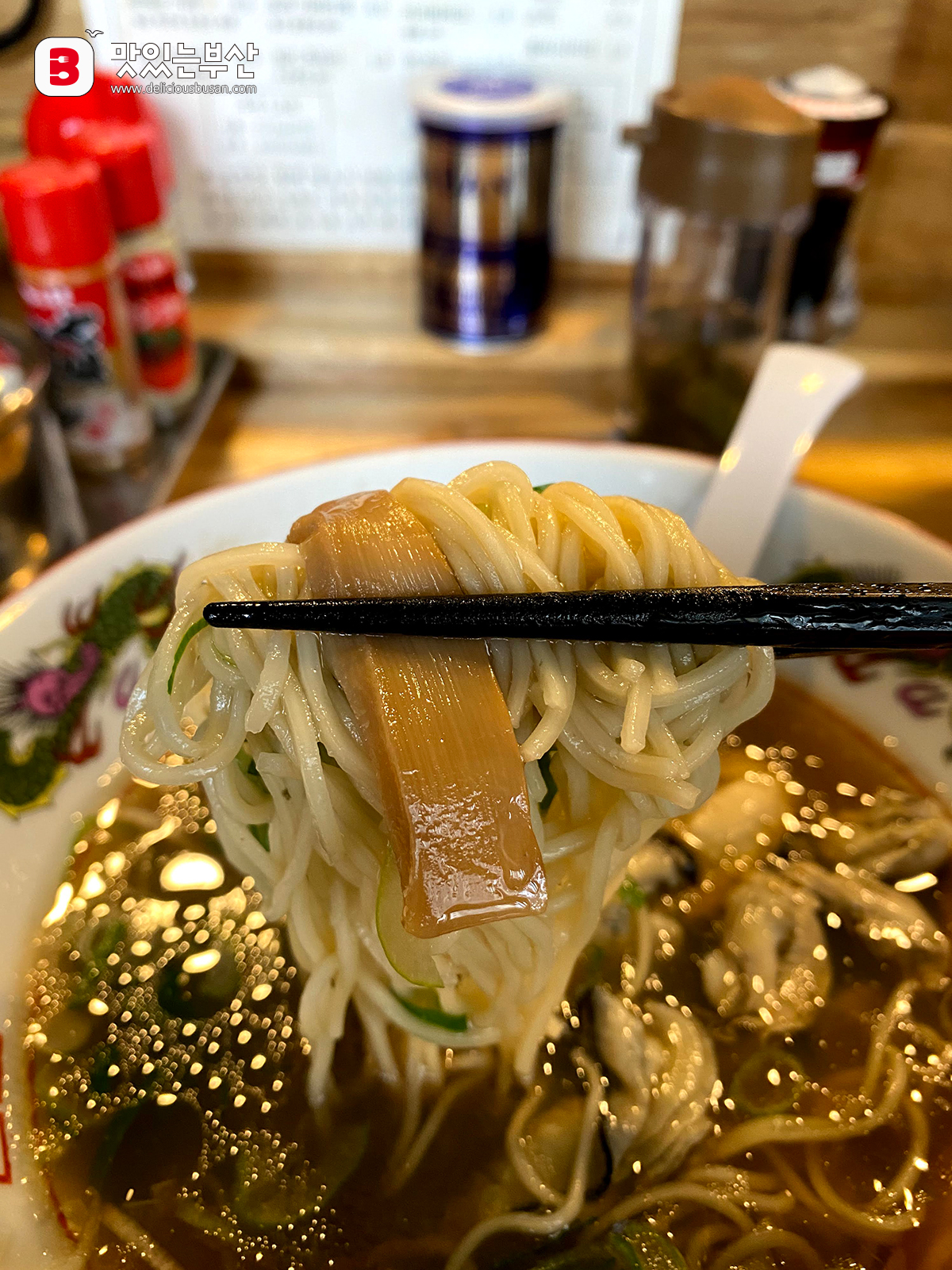 류센소 돈코츠라멘에는 죽순을 발효시킨 멘마와 차슈,