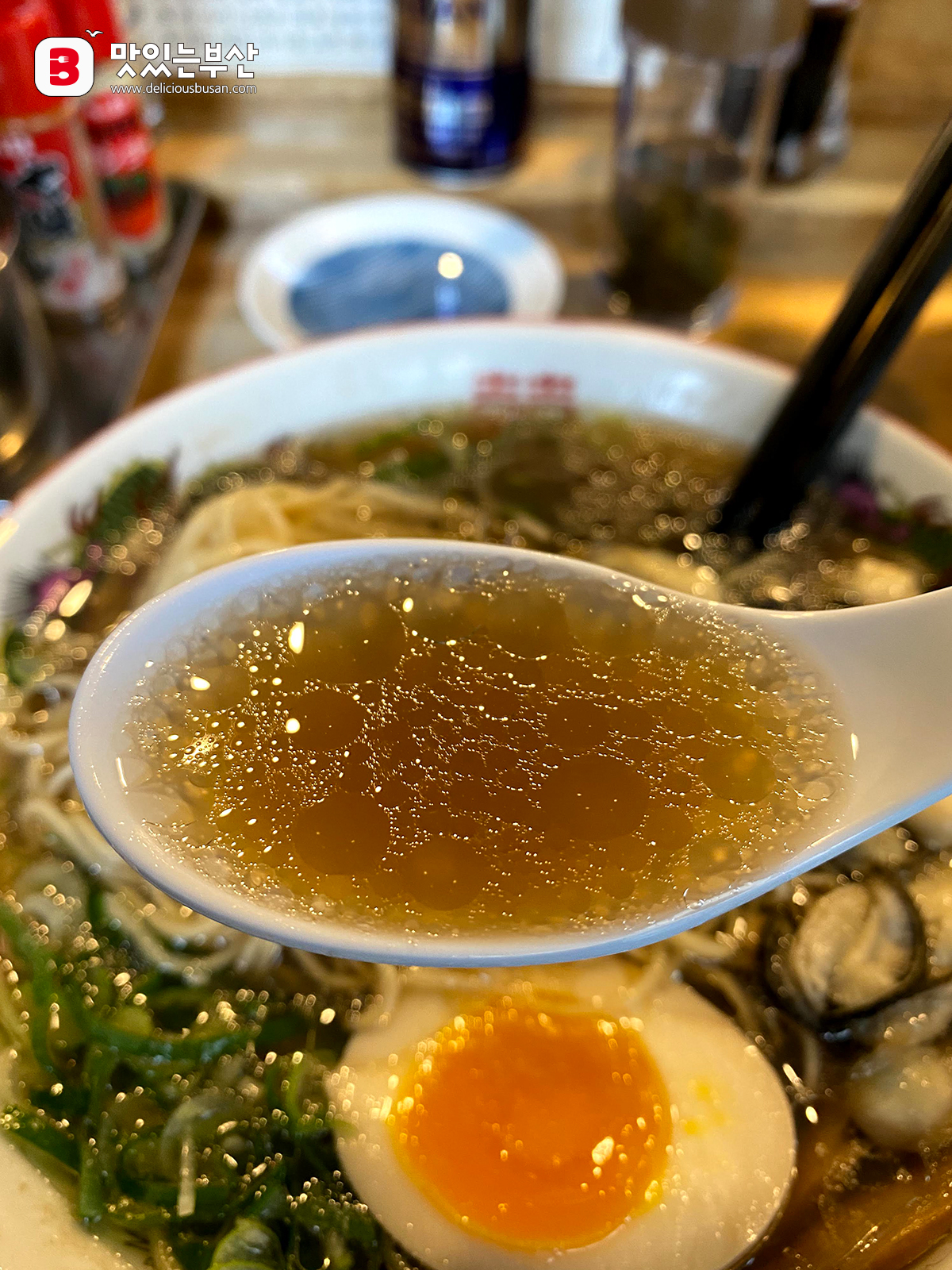 돈코츠와 달리 국물이 맑다.