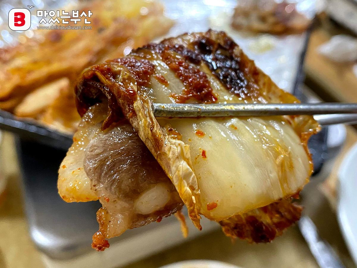 구운 김치로 싸서도 먹고.