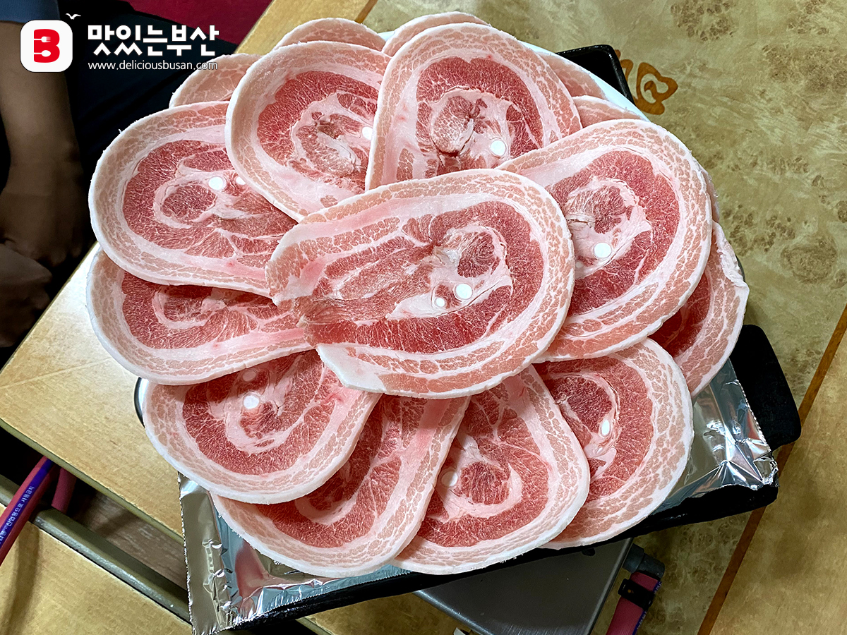 이 집은 생삼겹살을 말아서 급랭시킨 뒤 육절기로 썰어낸다고 들었다.