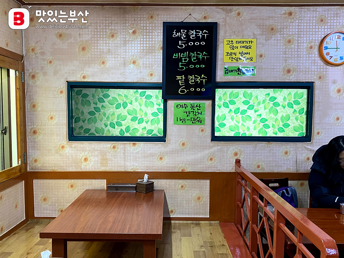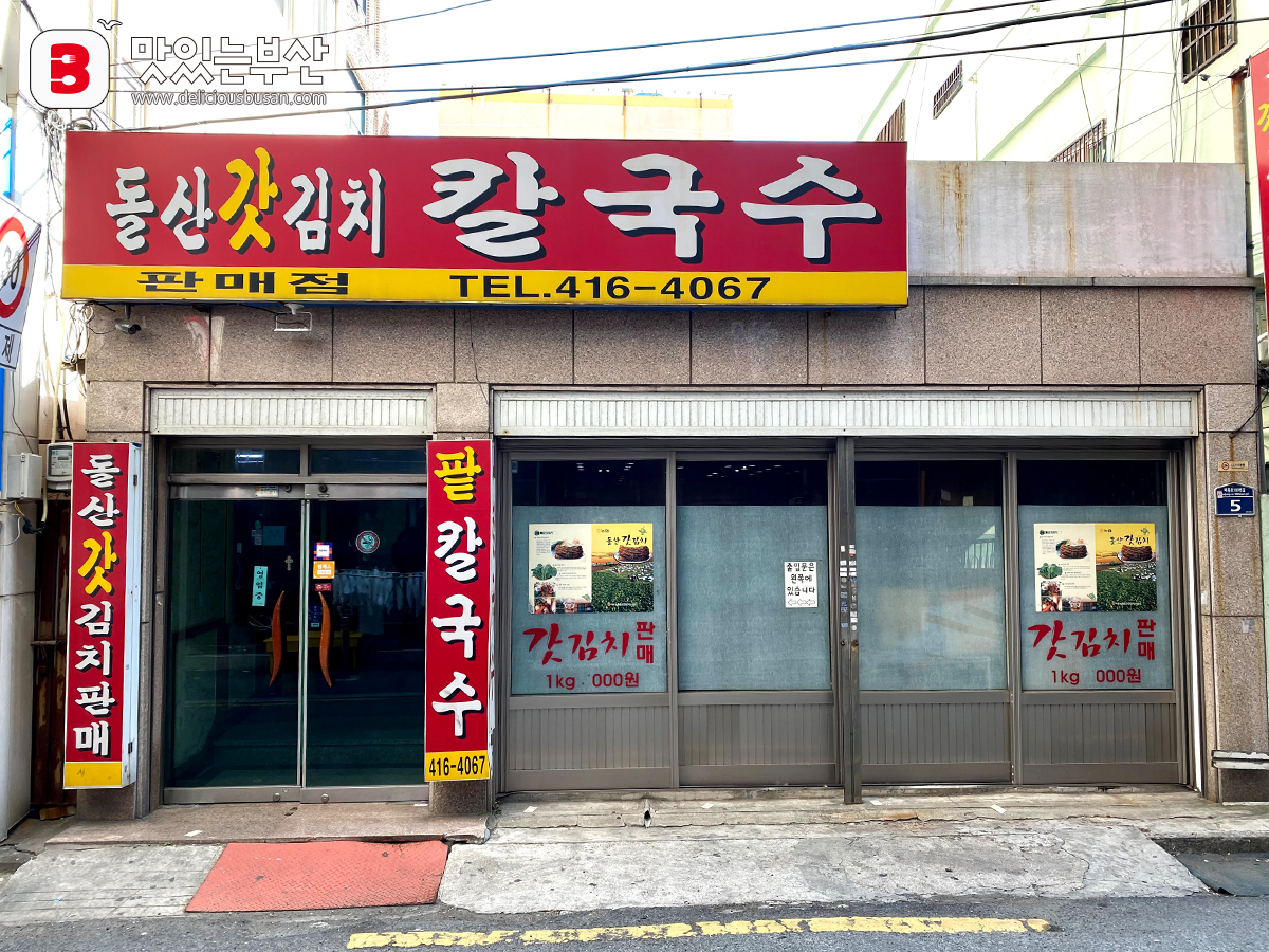남항시장 들어가기 전 골목에 위치한 돌산갓김치칼국수.