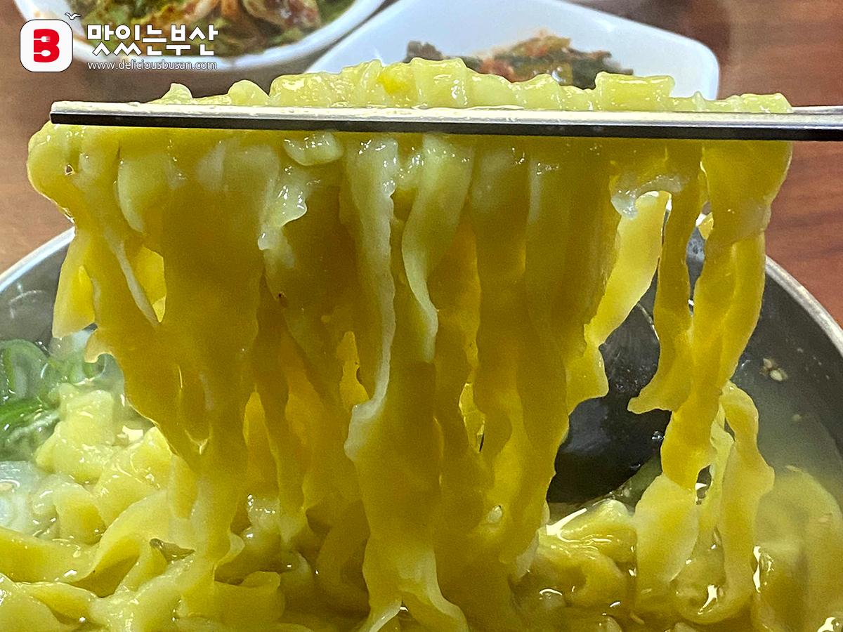 칼국수 면발이 노랗다.