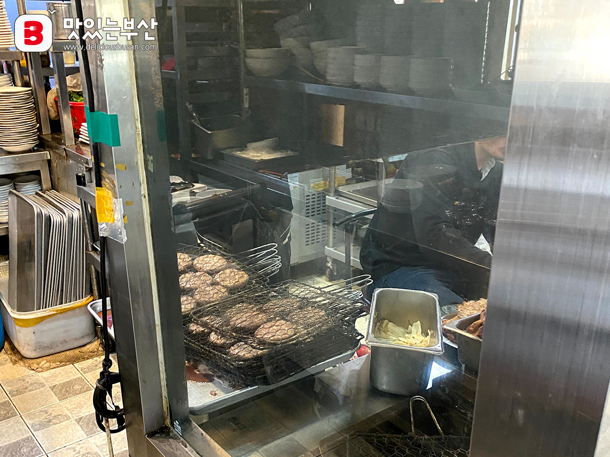가게 가운데 주방과 홀이 있는데 이렇게 떡갈비를 굽고 있었다.