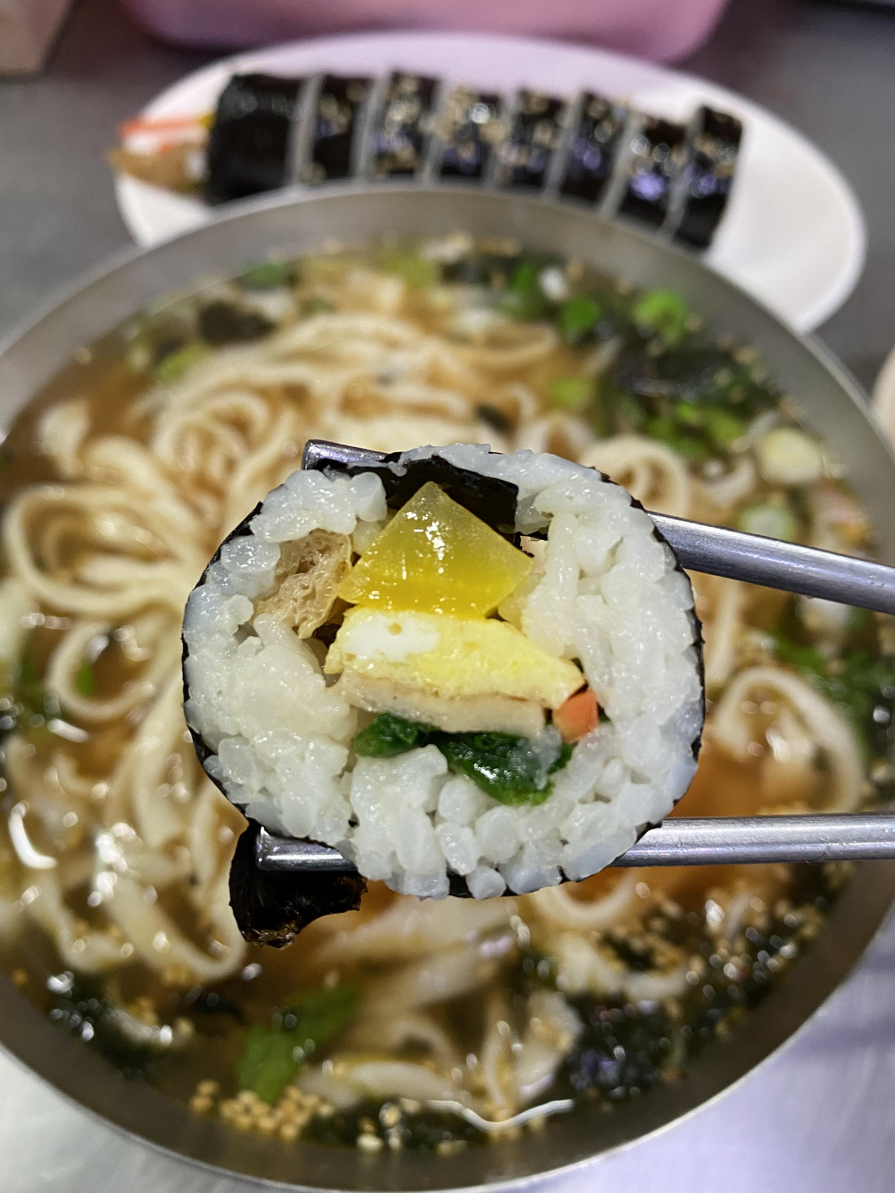 김밥을 국물에 푹 담궈 먹어도 좋다.