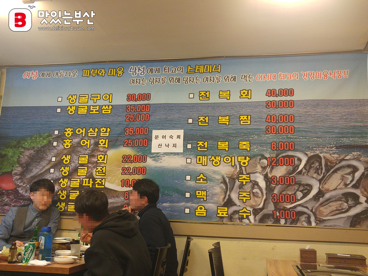 제철을 맞은 생굴이 나오기 시작하면 이른 저녁시간부터 가게 앞에서 차례를 기다리는 대기행렬을 쉽게 볼 수 있다. 인기메뉴는 생굴보쌈. 담백하고 고소한 돼지고기 수육과 달달한 보쌈김치와 함께 싱싱한 생굴을 배추위에 올려 쌈을 싸먹으면 절로 미소가 지어진다. 한 냄비 푸짐하게 담긴 생굴구이나 생굴파전도 인기메뉴다. 마무리는 생굴이 들어간 라면이나 굴떡국으로 속을 든든하게 해준다. 여름철에는 홍어삼합으로 생굴보쌈을 대신한다.