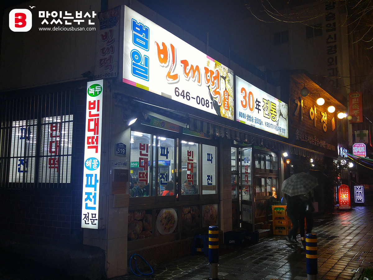 비가 오는 저녁이면 고소한 빈대떡에 막걸리 한 잔이 생각나는 사람이 많은지 우산을 쓰고 기다리는 대기인파를 심심찮게 볼 수 있다. 고소한 기름 냄새는 사람들의 발걸음을 멈추게 하는 힘이 있나보다. 빈대떡은 철판에 기름을 두르고 녹두반죽을 구워 겉은 바싹하고 석은 촉촉하다. 쪽파와 양파, 청양고추, 오징어를 버무려 계란옷을 입힌 파전 역시 인기메뉴. 40년 전통을 자랑하는 빈대떡, 파전 전문점이다.