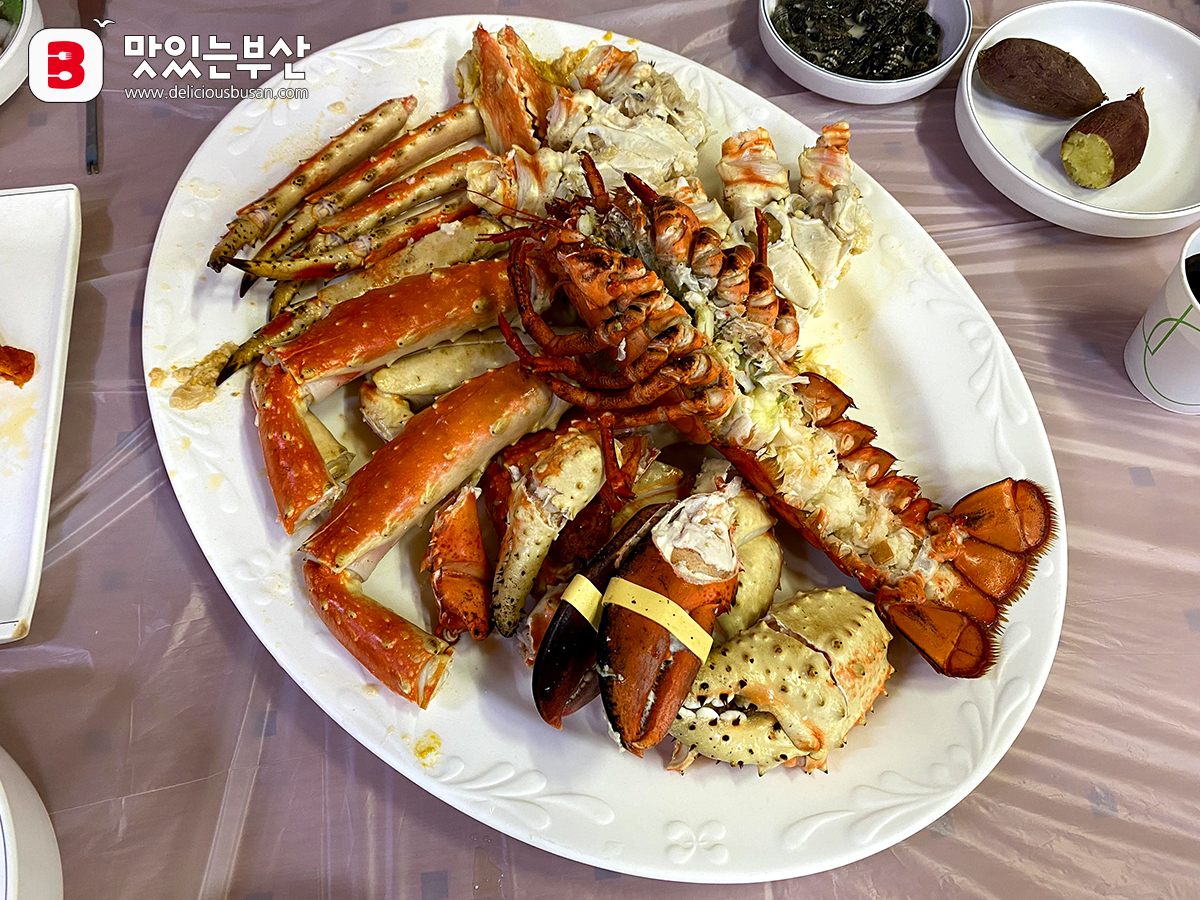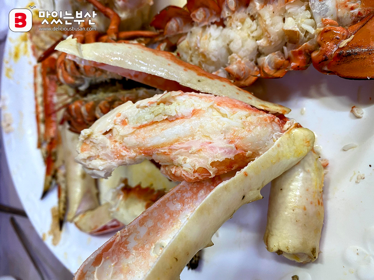 킹크랩 게딱지와 랍스타 껍데기만 남았다.