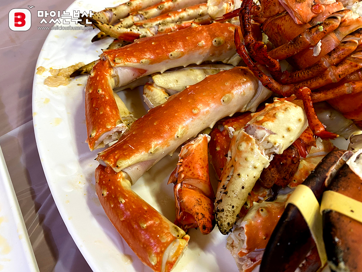 접시도 크고 킹크랩 다리며 랍스터며...