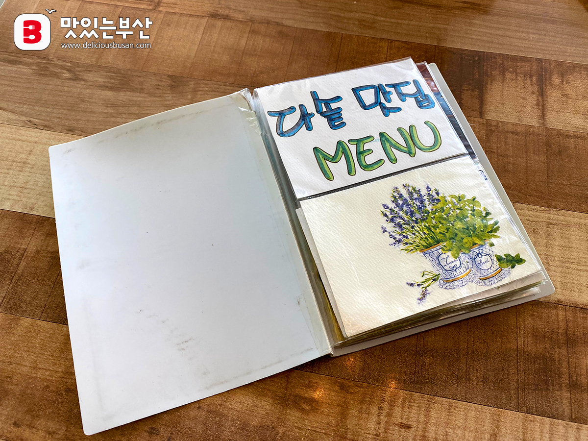 양쪽으로 두 페이지가 한 메뉴를 소개하고 있다.