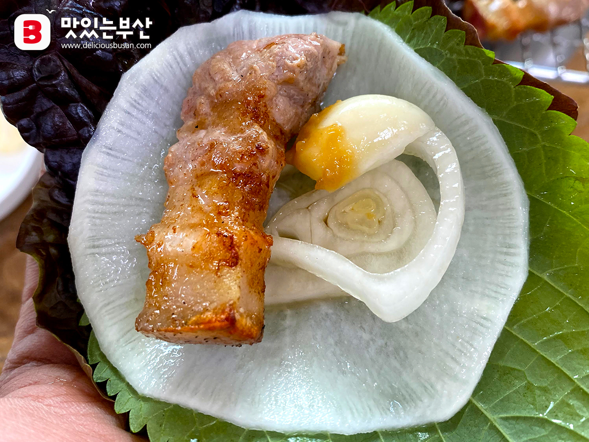 고기 껍데기에 박힌 까만 털이 "나 흑돼지요~"하고 말하는 것 같다.