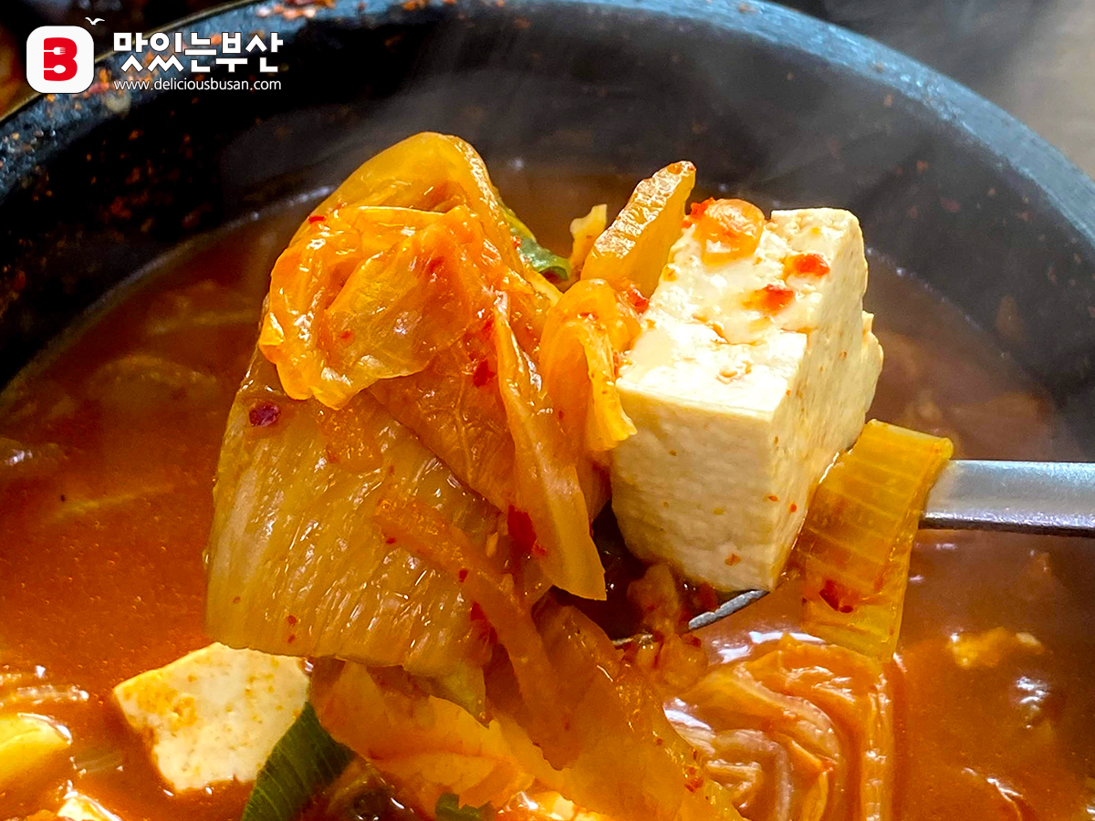 김치찌개에는 새콤한 김치와 두부, 고기가 들어가고.
