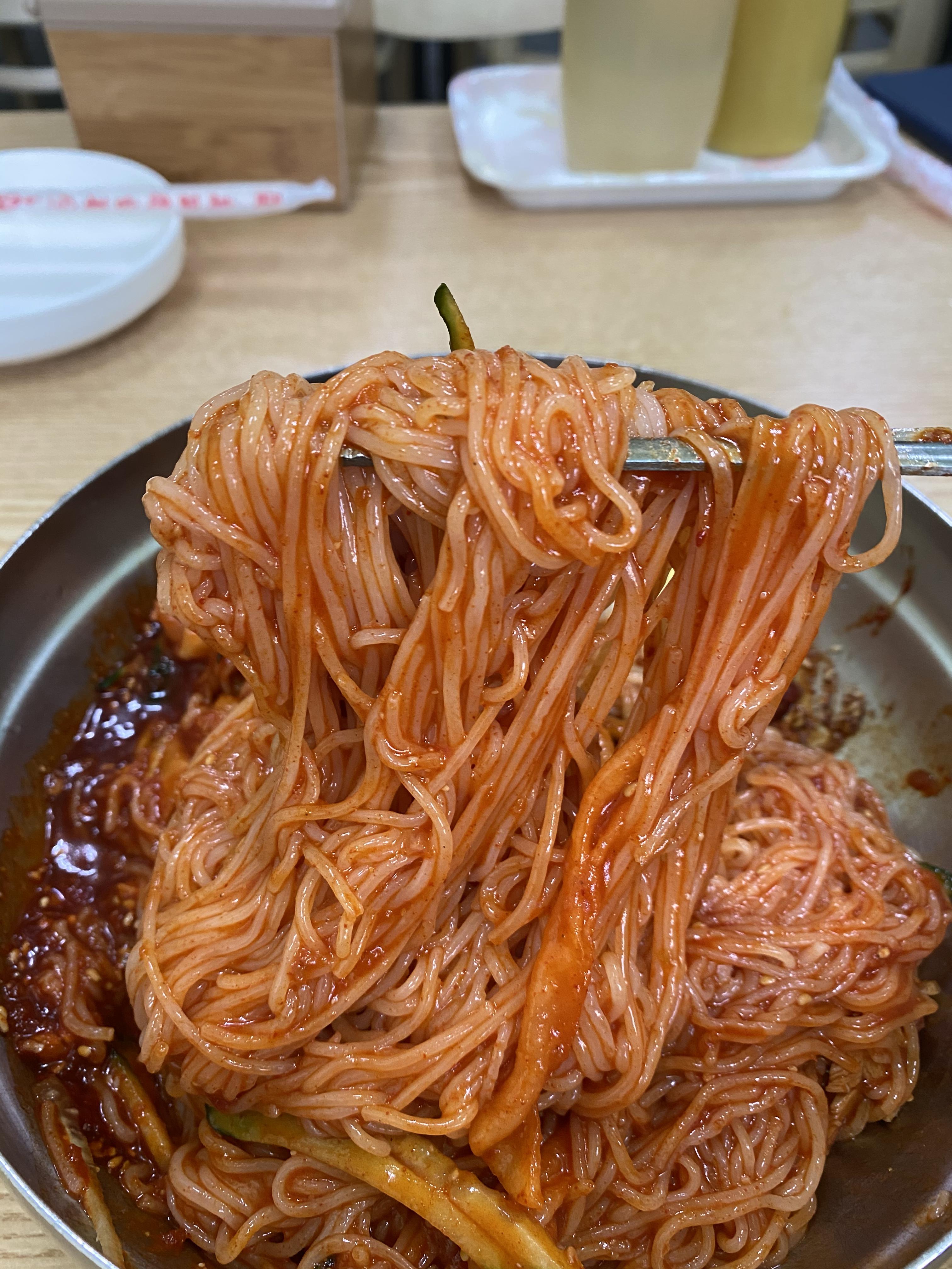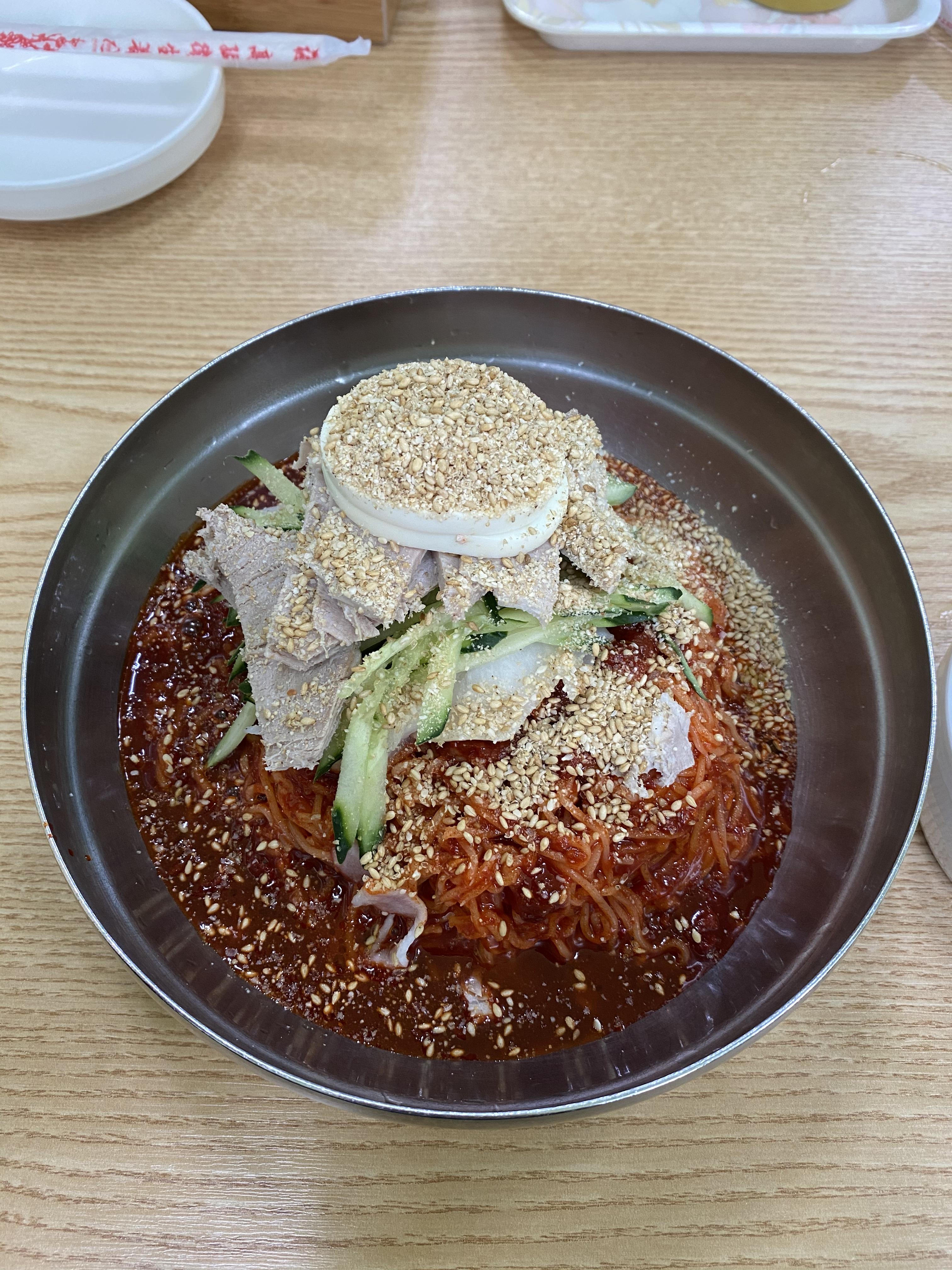 항상 물밀면만 먹다가 처음으로 비빔밀면을 주문했다.