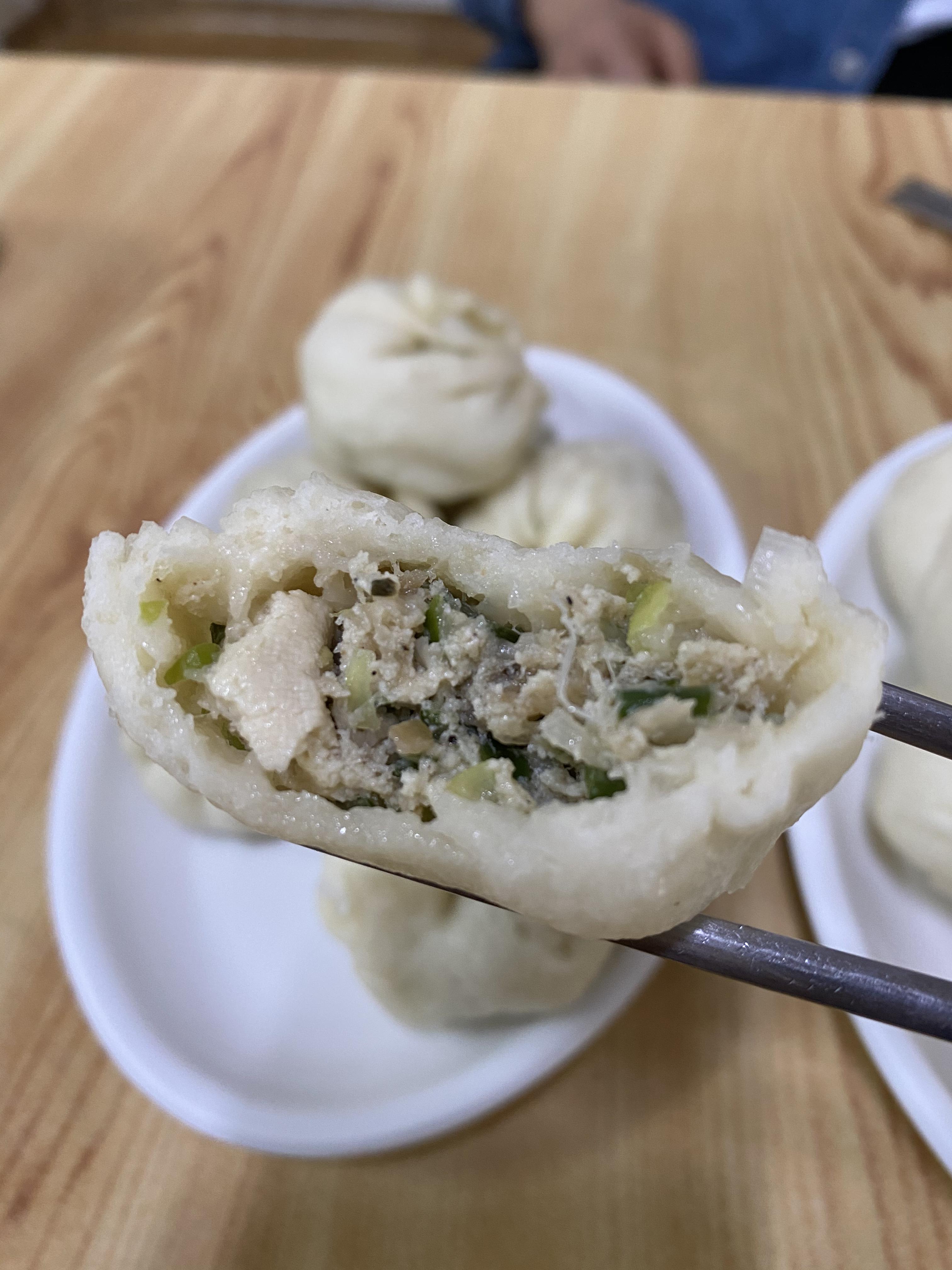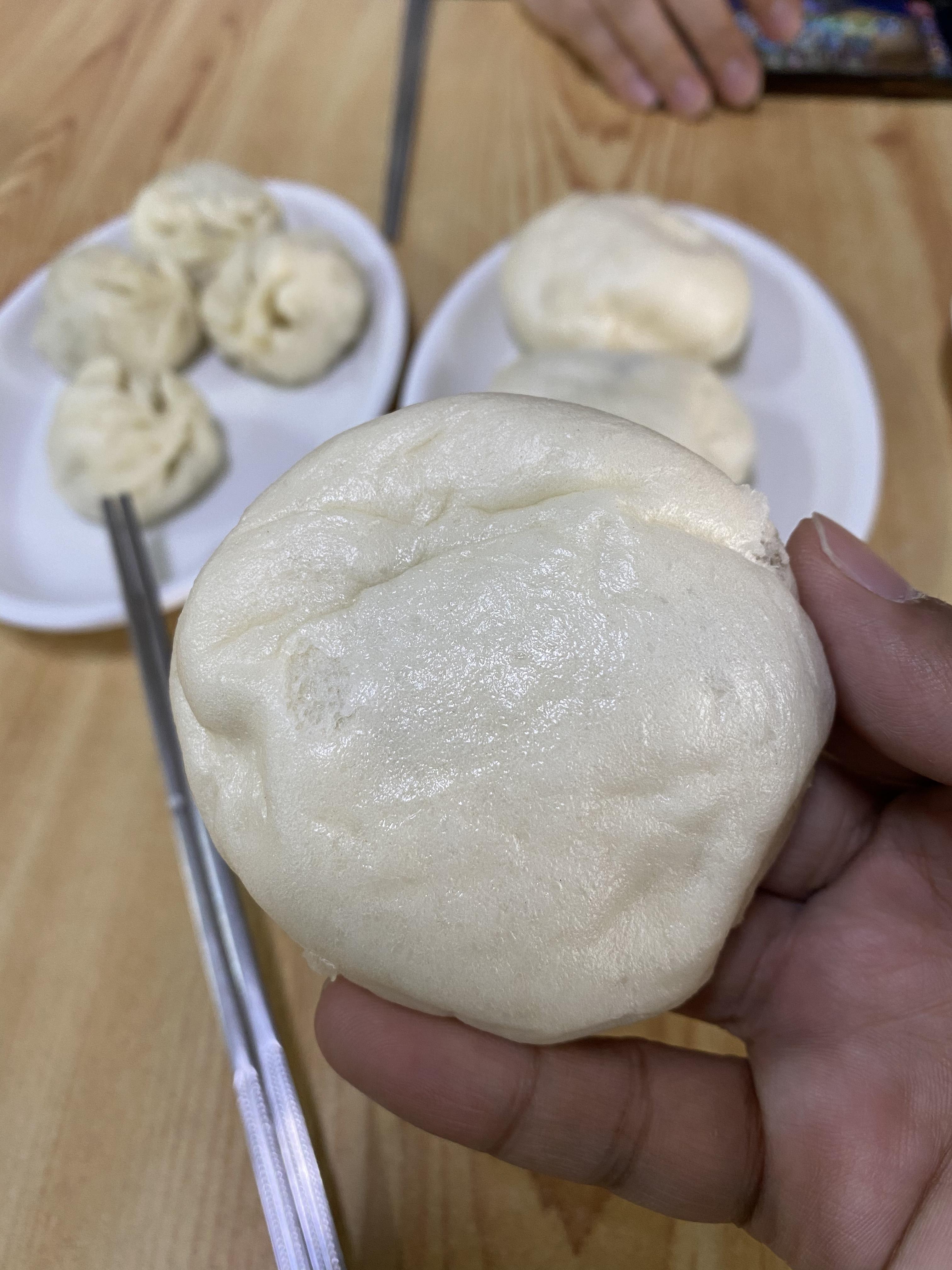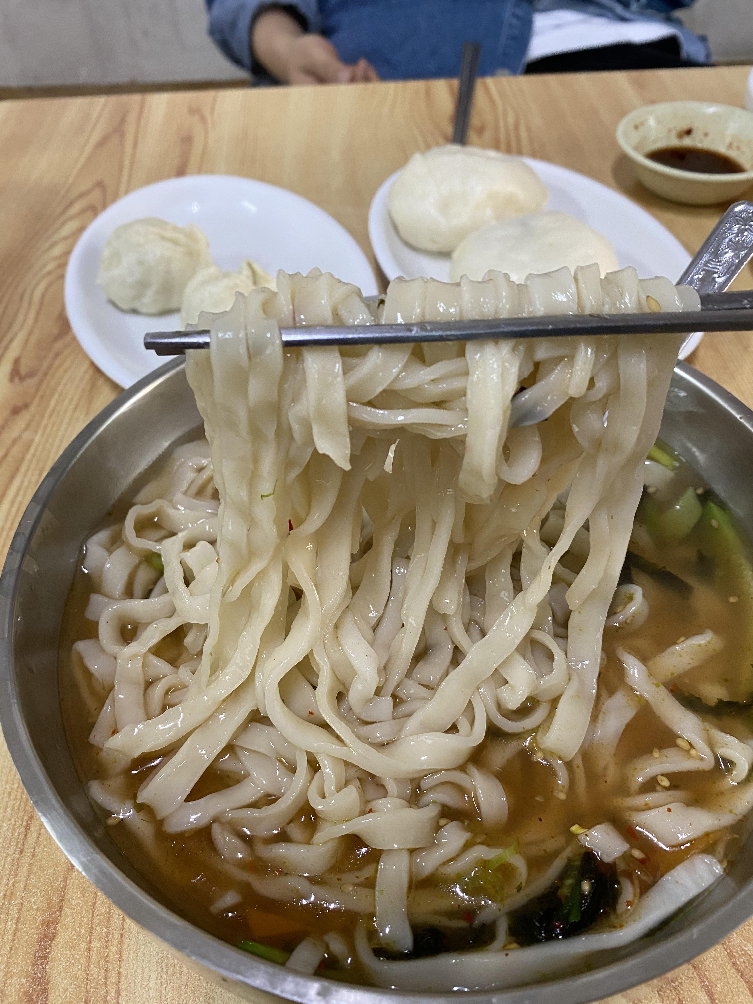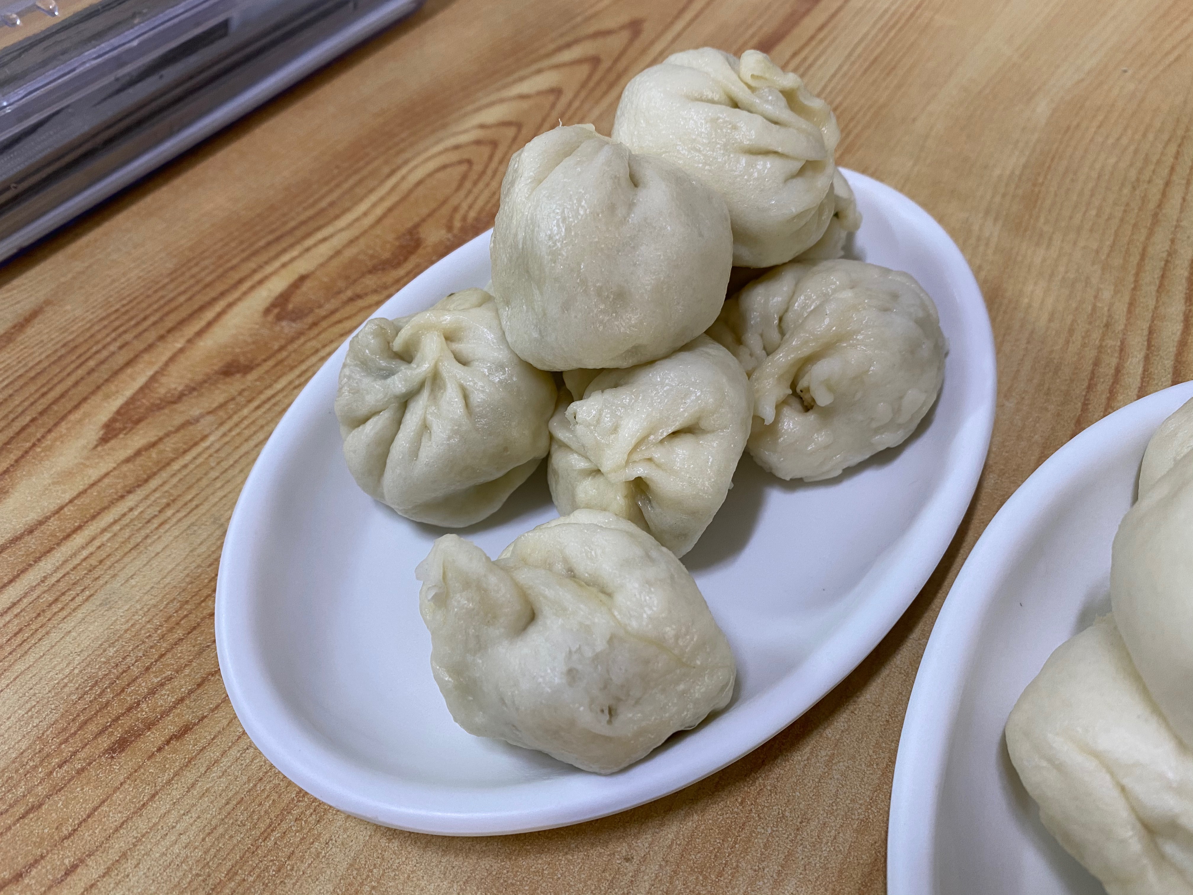 폭신한 고기만두와 찐빵 그리고 칼국수 한 그릇.