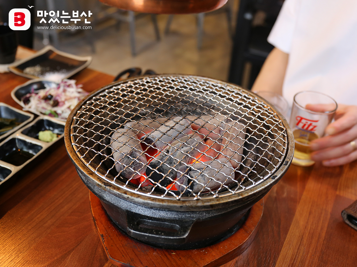 맥주로 입가심을 하고 있으니 비장탄이 든 숯불화로를 놓아준다.