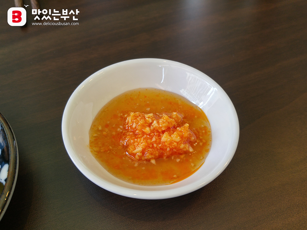 곱게 다진 마늘에 고추기름을 섞은 듯한 양념이었는데 간장을 뿌려 먹으라고 하더라.