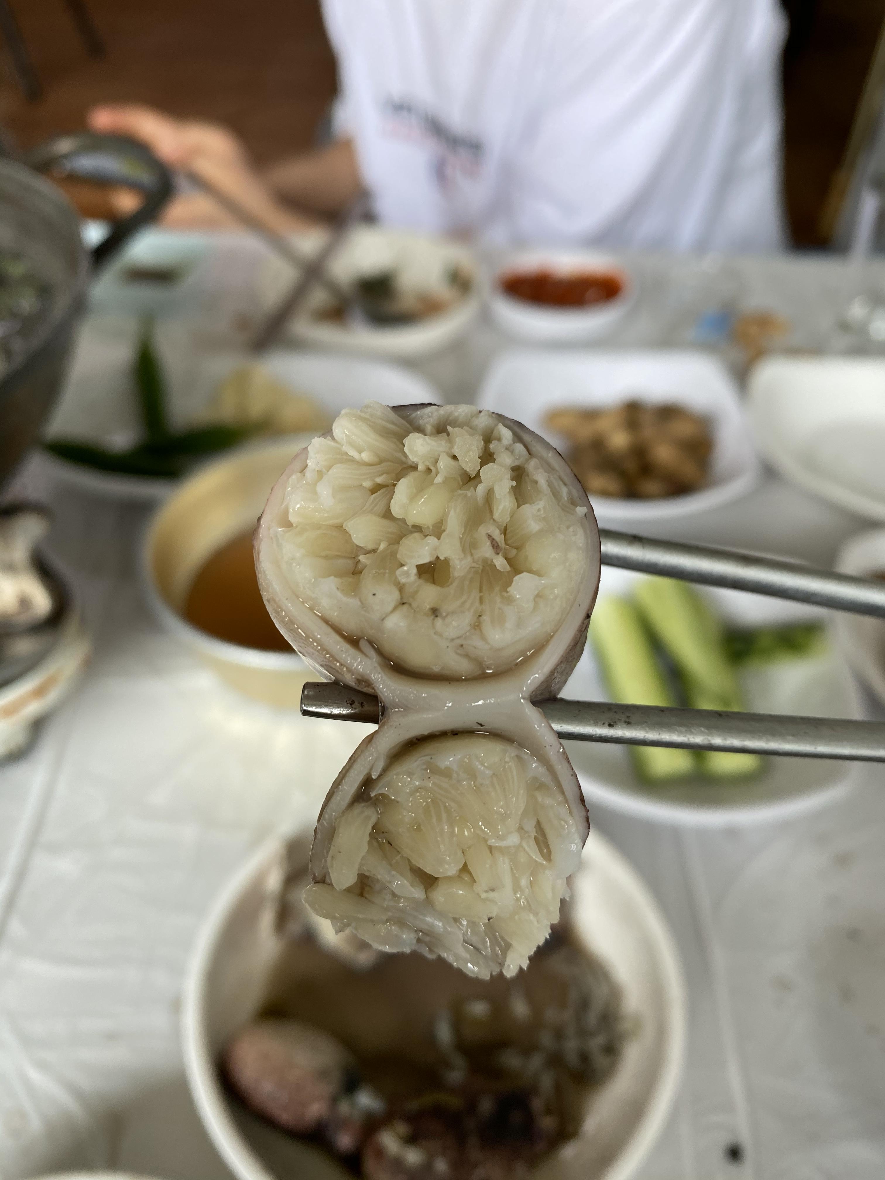 건질 때 주꾸미 대가리도 같이 건져냈다.