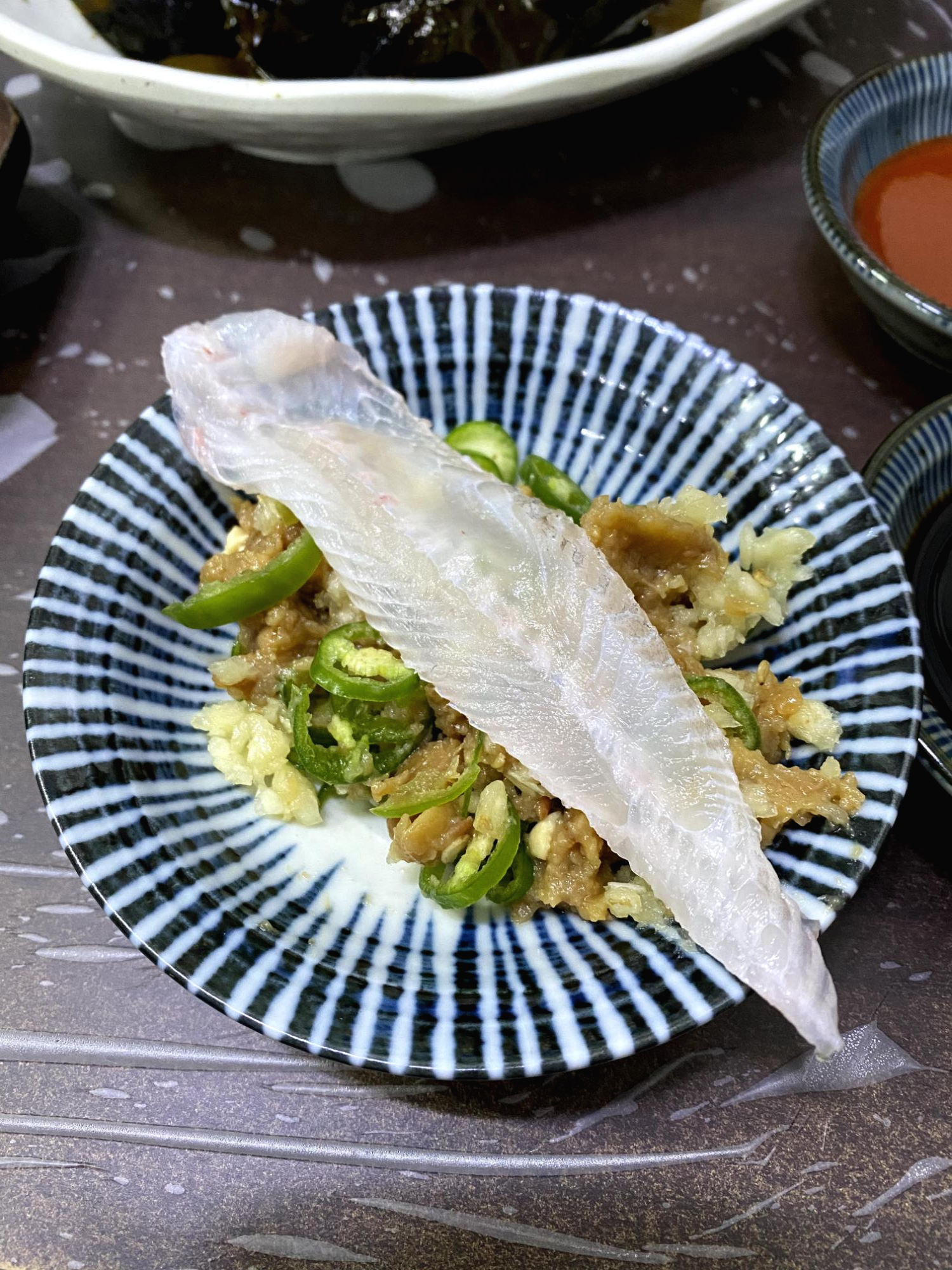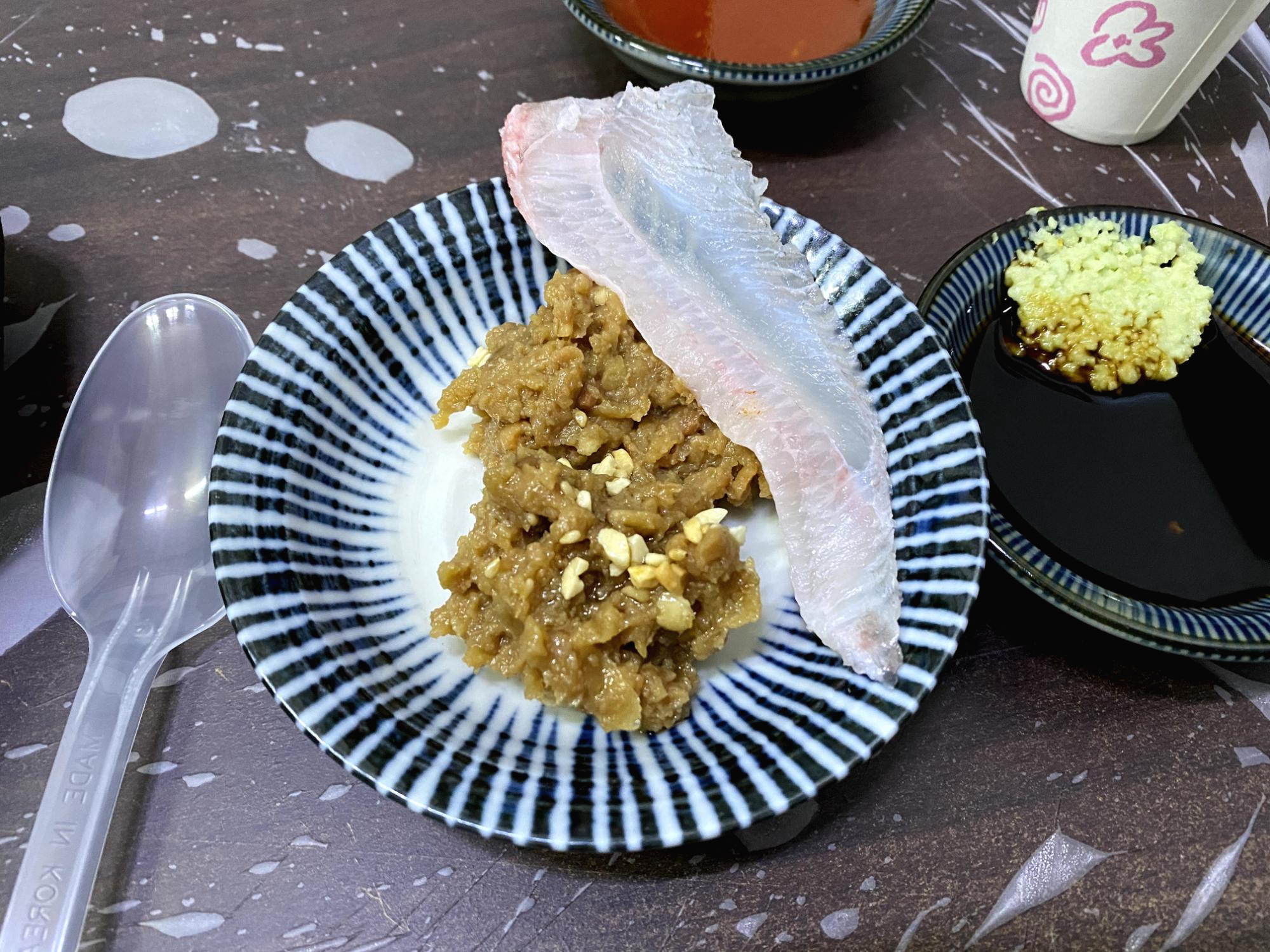 뼈를 제거한 회는 맛도 식감도 심심하게 느껴질 수 있다.