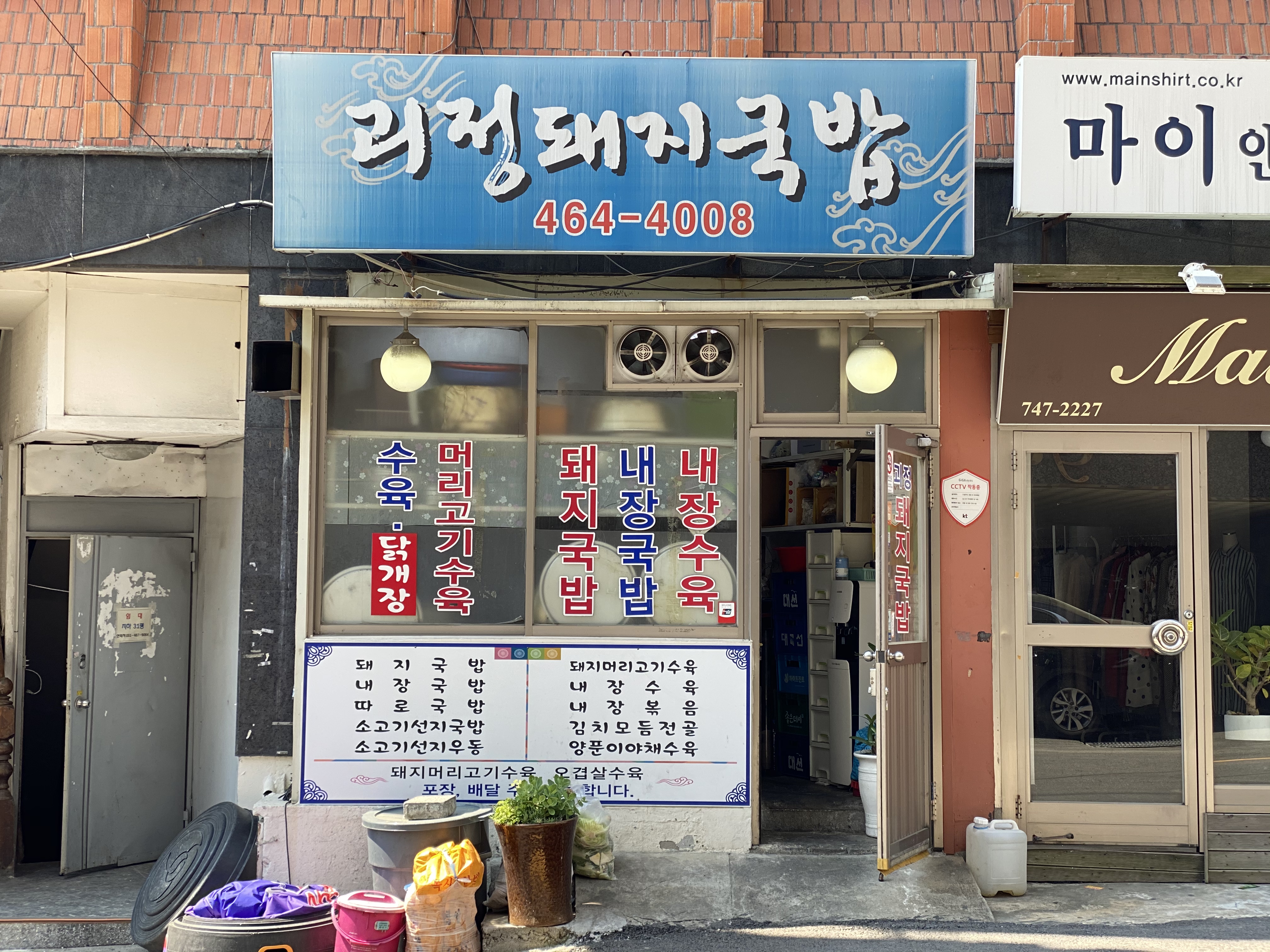 그 중에서도 괴정돼지국밥은 이 집만의 개성이 있다. 초량 전통시장과 초량역 사이의 항일거리 근처다.