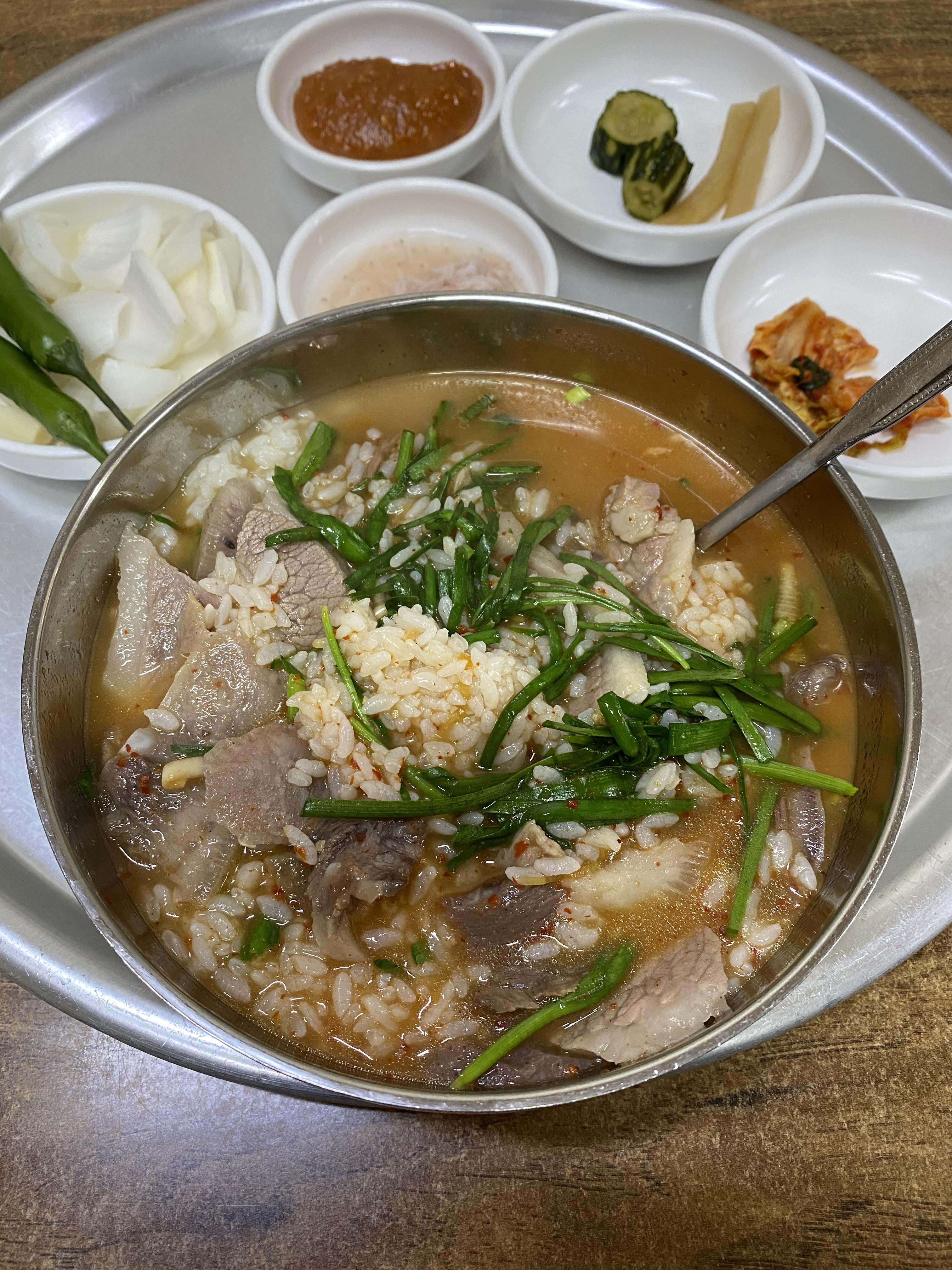 고기도 밥도 양이 상당히 많았다. 고기에 내장을 좀 섞어주고, 들깨가루 한 숟가락 넣어주면 전라도 스타일의 돼지국밥이 될 것 같다. 아직 부산의 모든 돼지국밥집들을 다녀보지는 못했지만, 개성있는 국밥이라 생각한다.