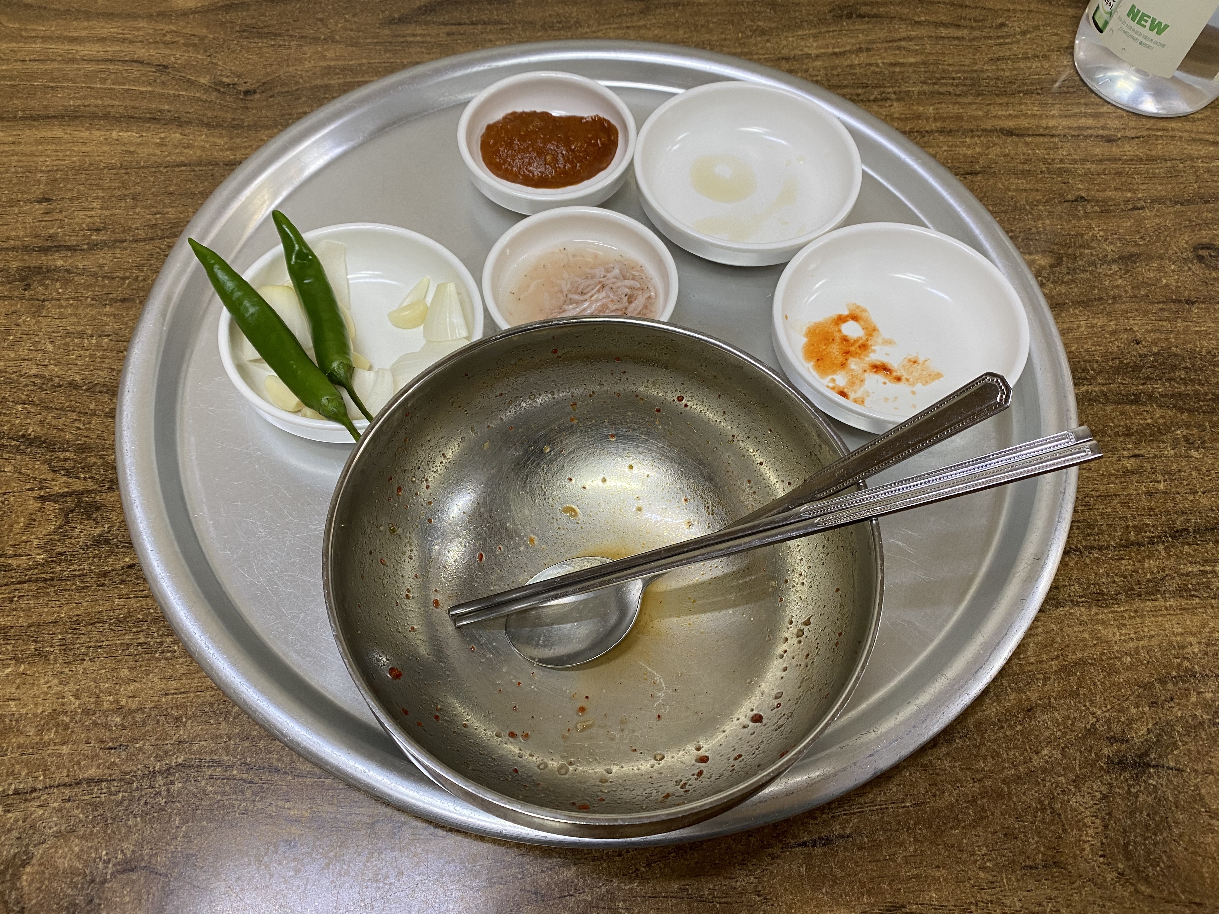 고기도 밥도 양이 상당히 많았다. 고기에 내장을 좀 섞어주고, 들깨가루 한 숟가락 넣어주면 전라도 스타일의 돼지국밥이 될 것 같다. 아직 부산의 모든 돼지국밥집들을 다녀보지는 못했지만, 개성있는 국밥이라 생각한다.
