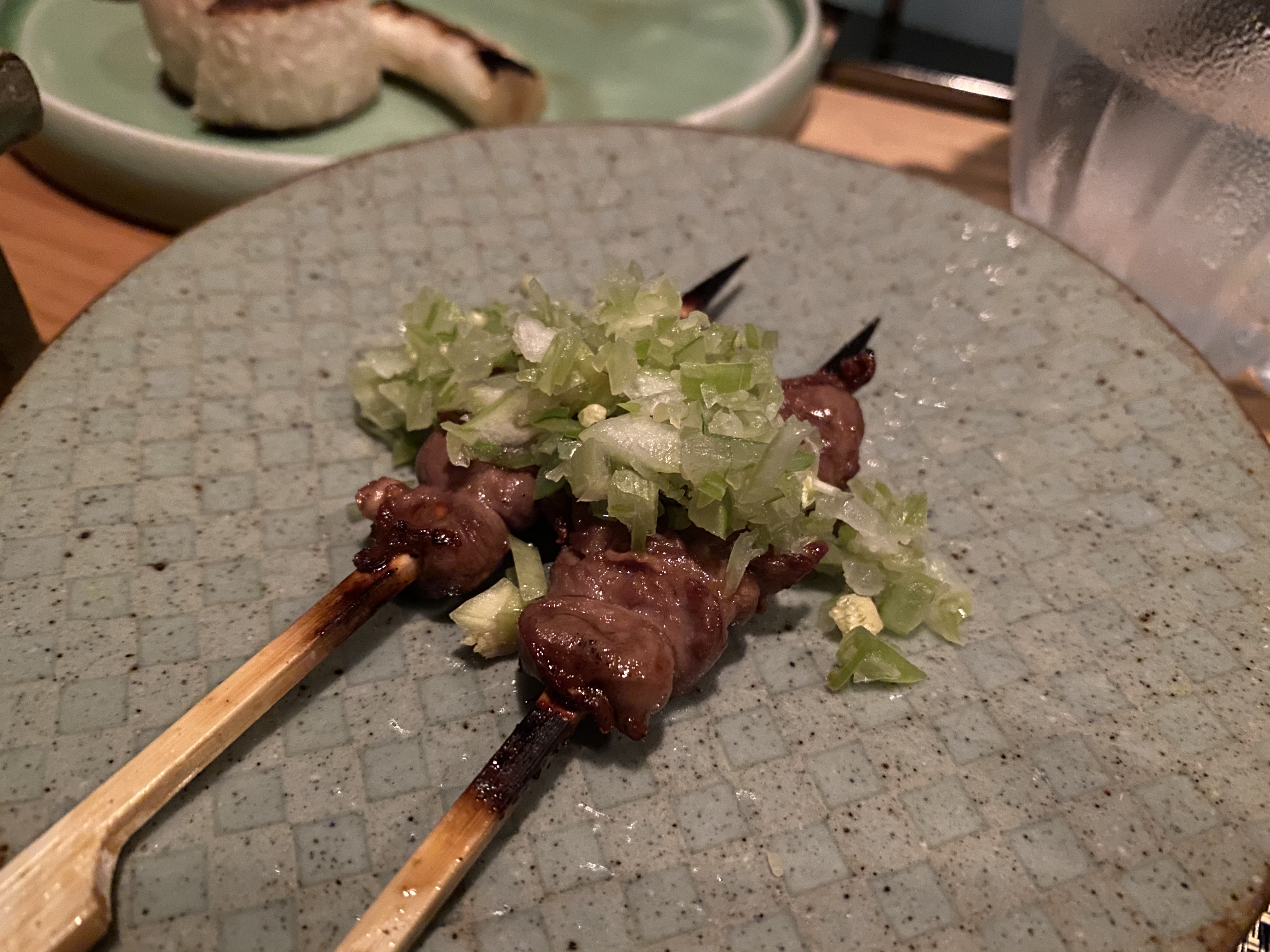 첫번째 야키토리는 닭의 목살. 일본에서는 세세리(セセリ)라고도 부르는데 촉촉하고 쫄깃한 식감이 좋다. 치킨으로 먹을 때는 그렇게 거슬리던 닭 목살이 뼈를 발골 해 구워주는 야키토리로 만나니 목살만의 매력이 드러난다.