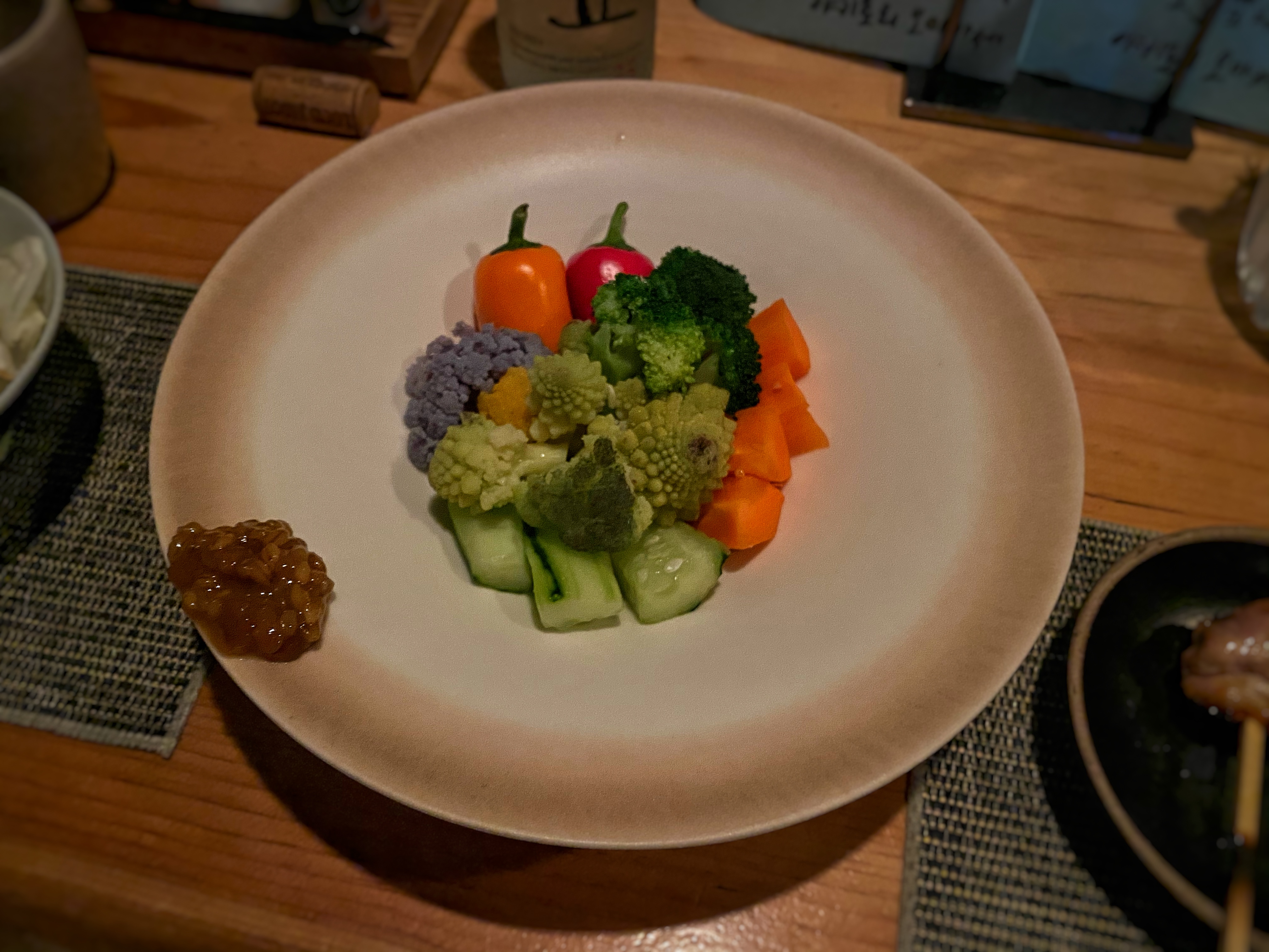 메인인 꼬치구이를 먹으며 중간중간에 입가심해줄 수 있는 생야채를 내어준다.
