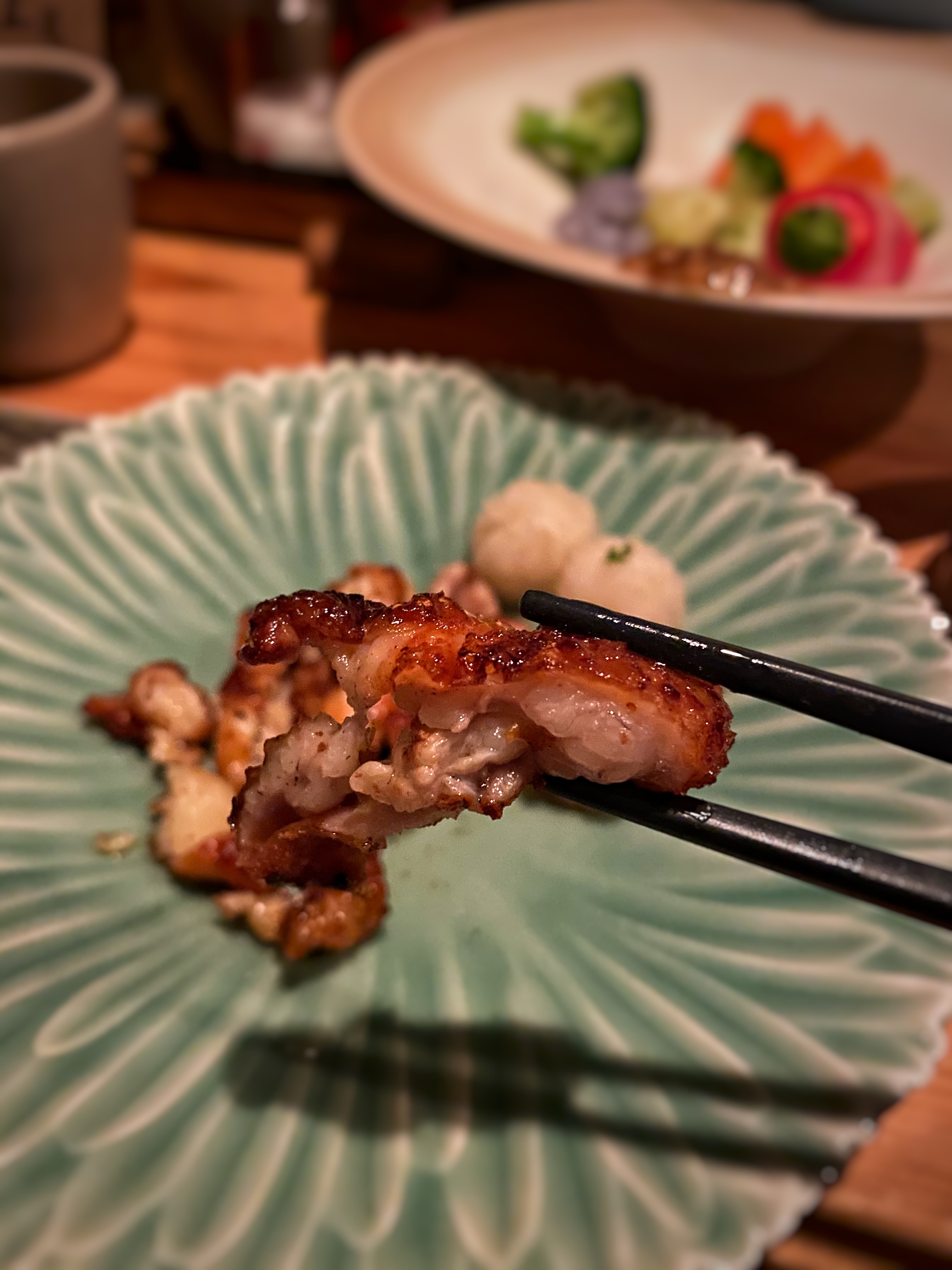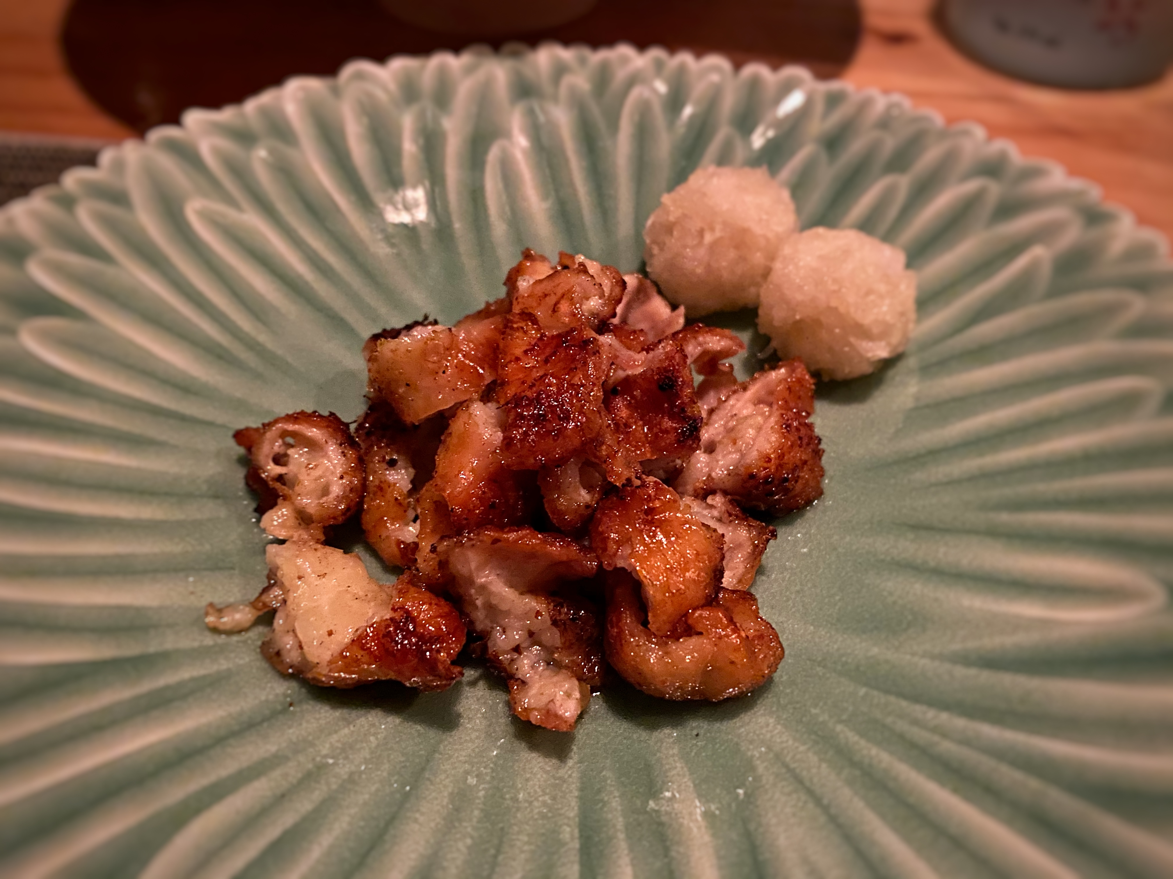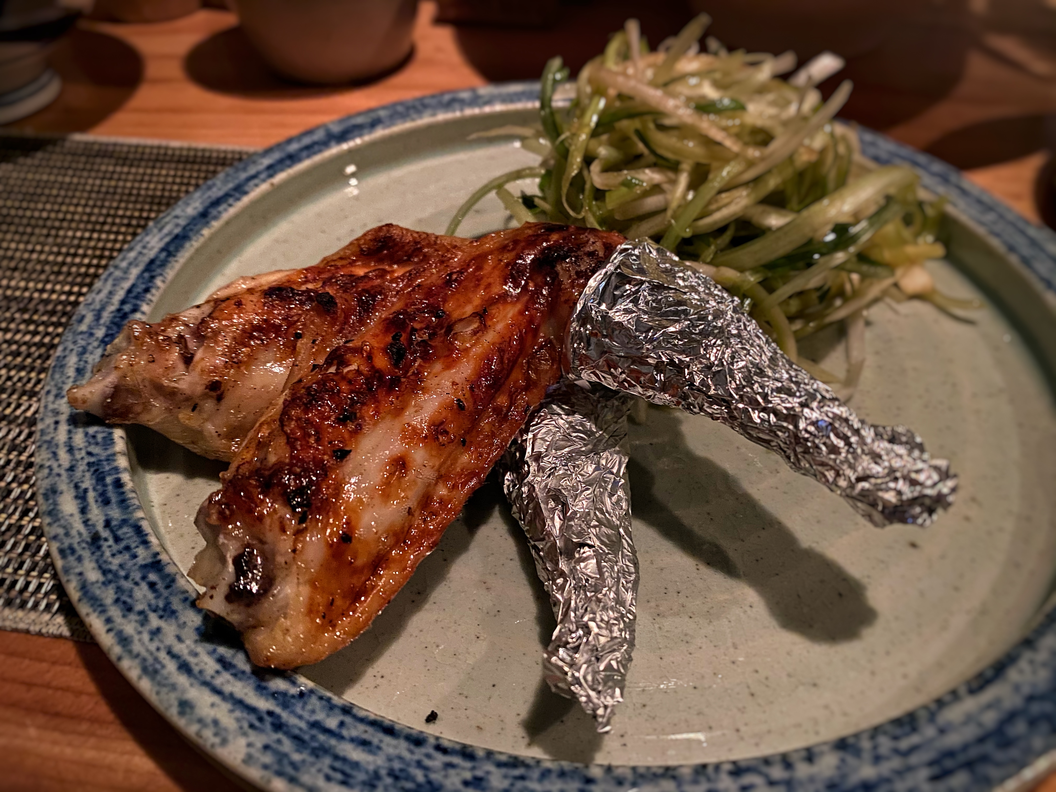 첫번째 야키토리는 닭의 목살. 일본에서는 세세리(セセリ)라고도 부르는데 촉촉하고 쫄깃한 식감이 좋다. 치킨으로 먹을 때는 그렇게 거슬리던 닭 목살이 뼈를 발골 해 구워주는 야키토리로 만나니 목살만의 매력이 드러난다.