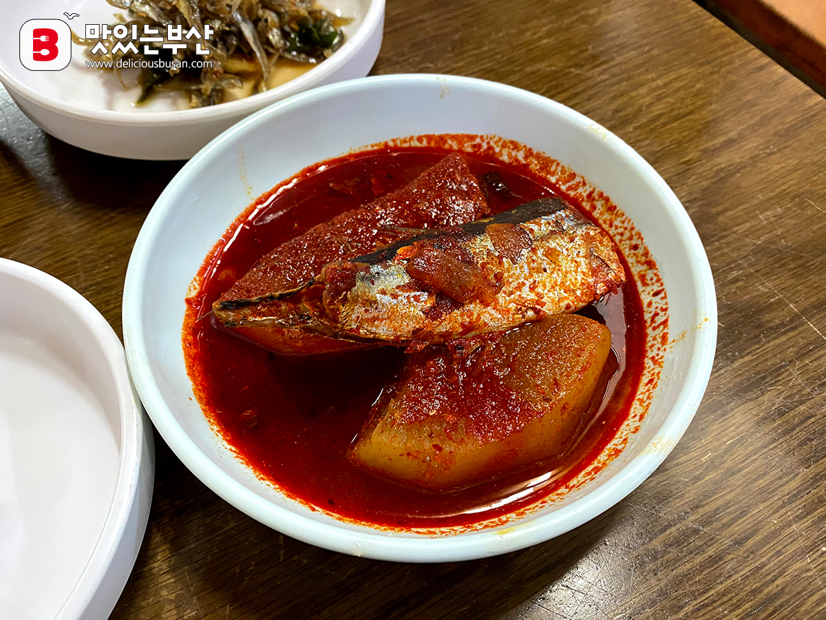 빨간 양념을 머금은 이 무조림 하나만 있어도 밥 한공기 비우는 건 문제 없어 보인다.