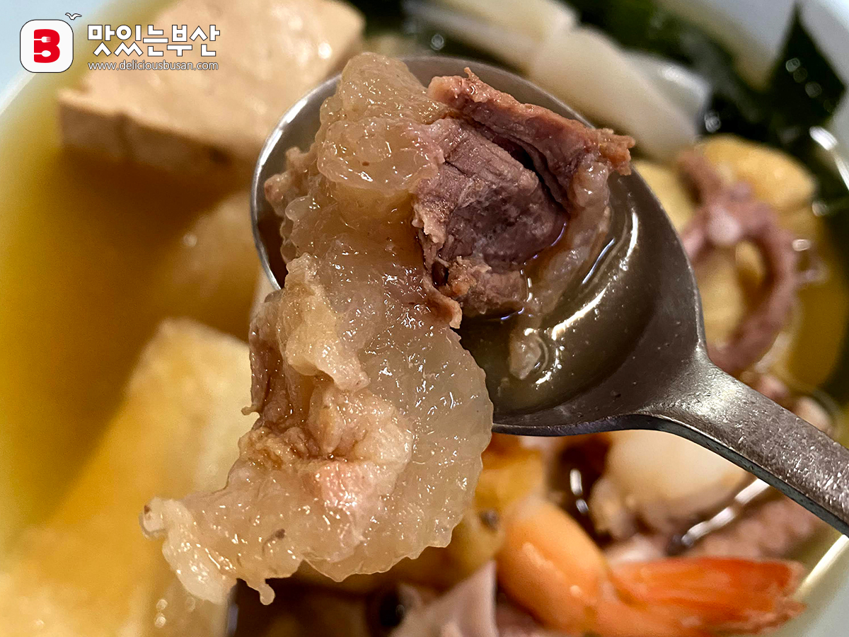 재료가 다양해서인지 국물맛이 단맛도는 탕국스럽다.