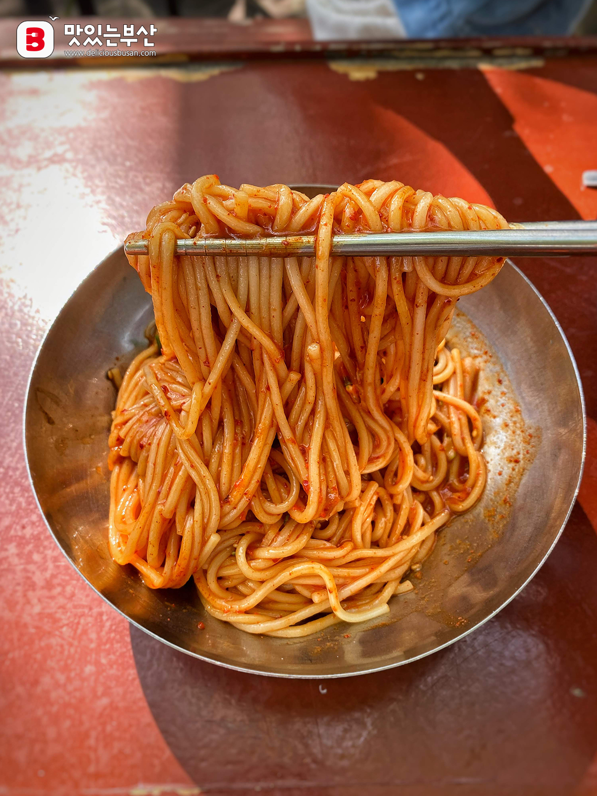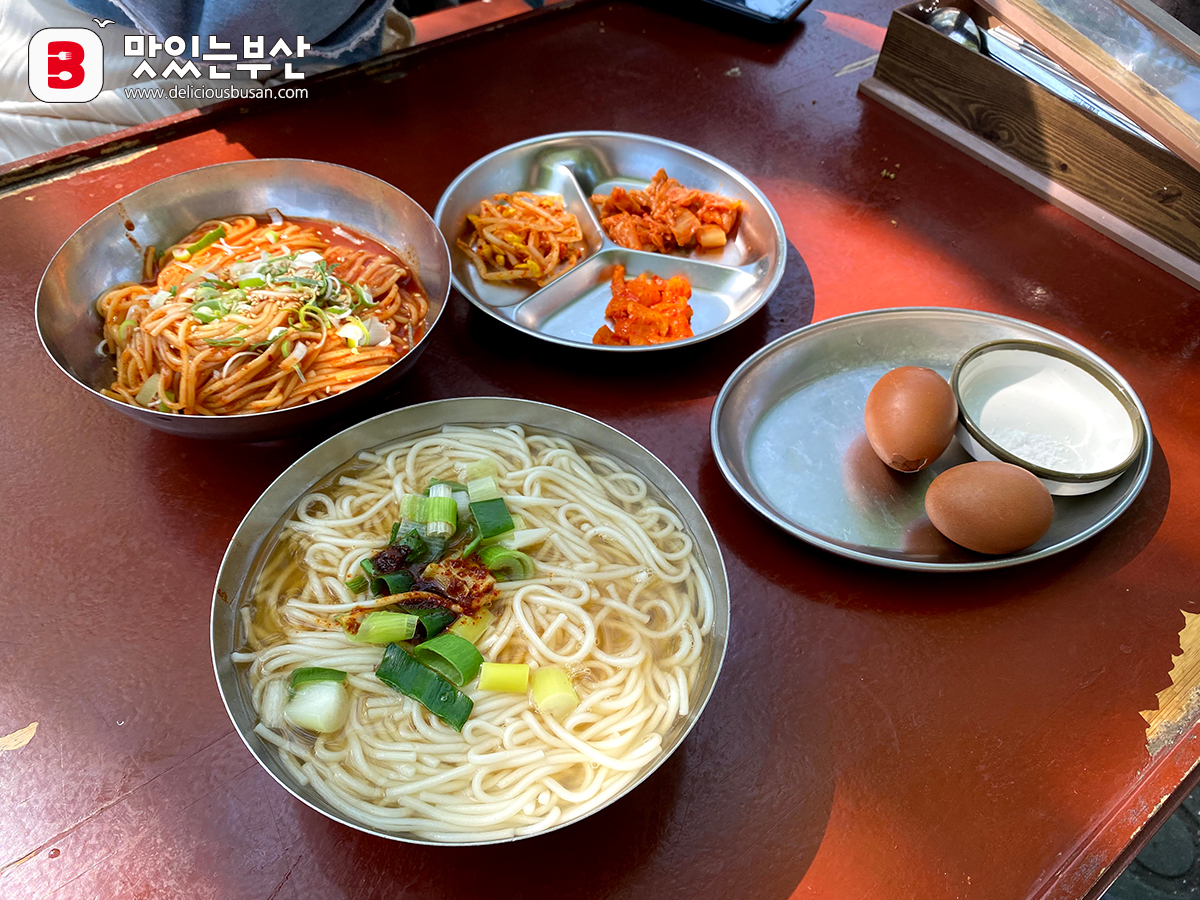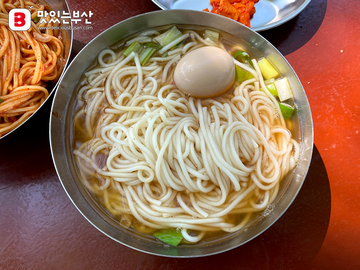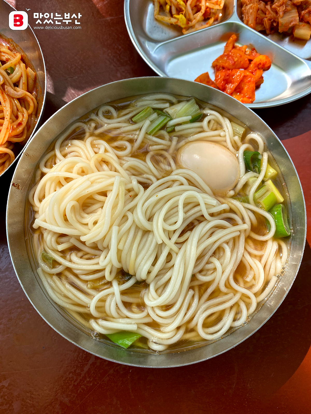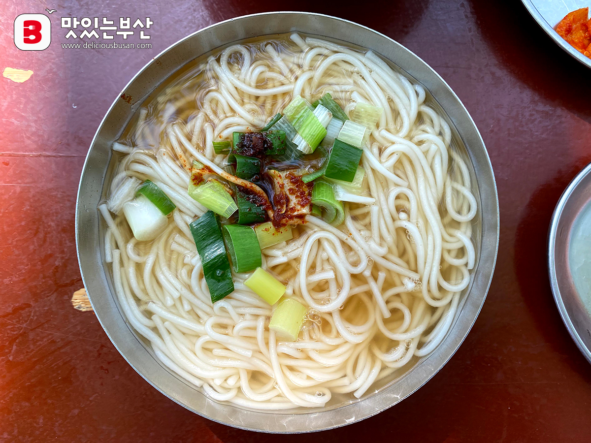국수 면발이 상당히 굵은데 부산에서는 좀처럼 찾아보기 힘든 스타일이다.