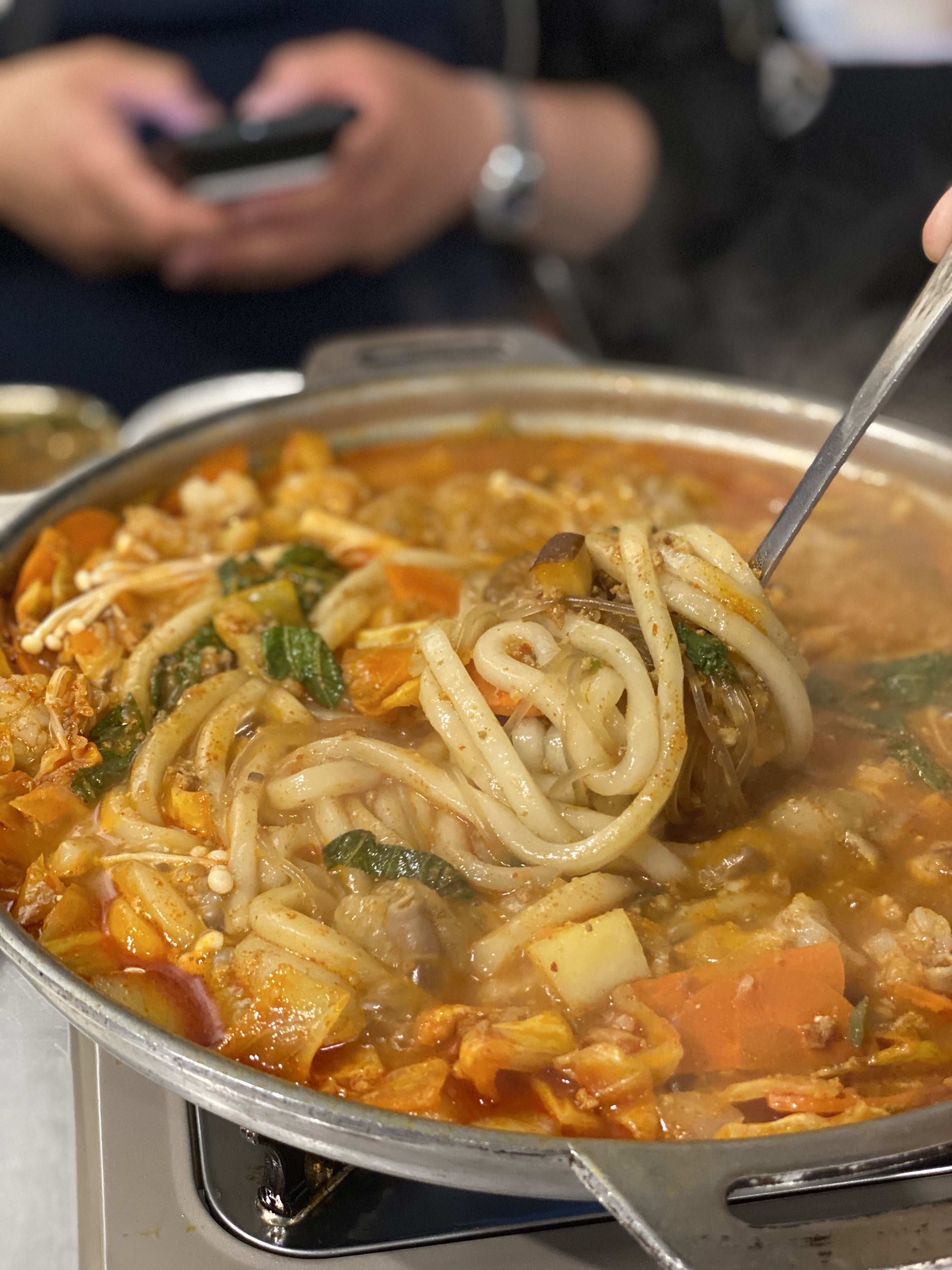 기본으로 들어가는 당면과 추가로 넣은 우동.