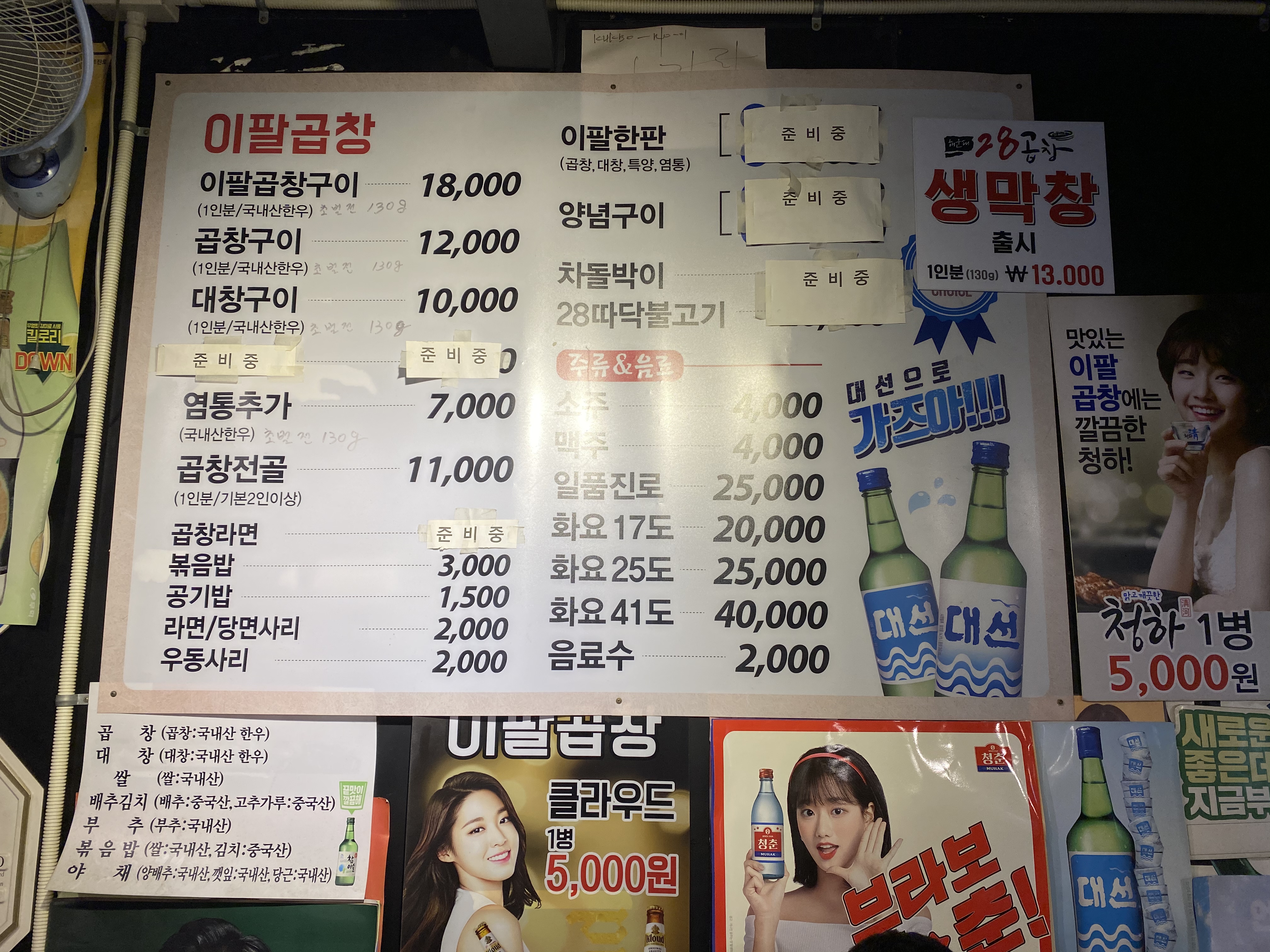 좀 늦은 시간에 방문했더니, 시그니처인 이팔곱창은 다 나갔다고 한다.