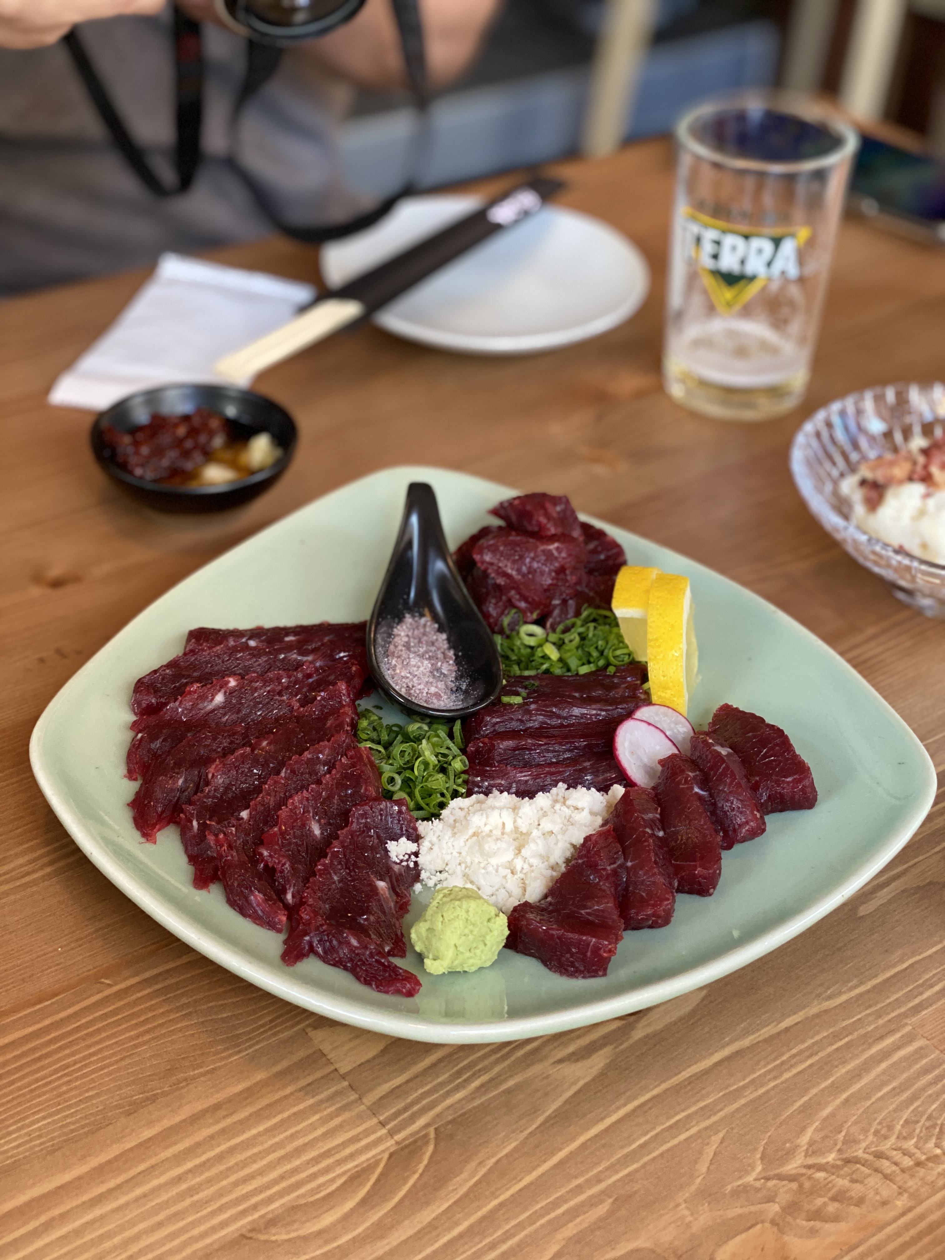 메뉴에 고래고기가 있어서 하나 주문했다.