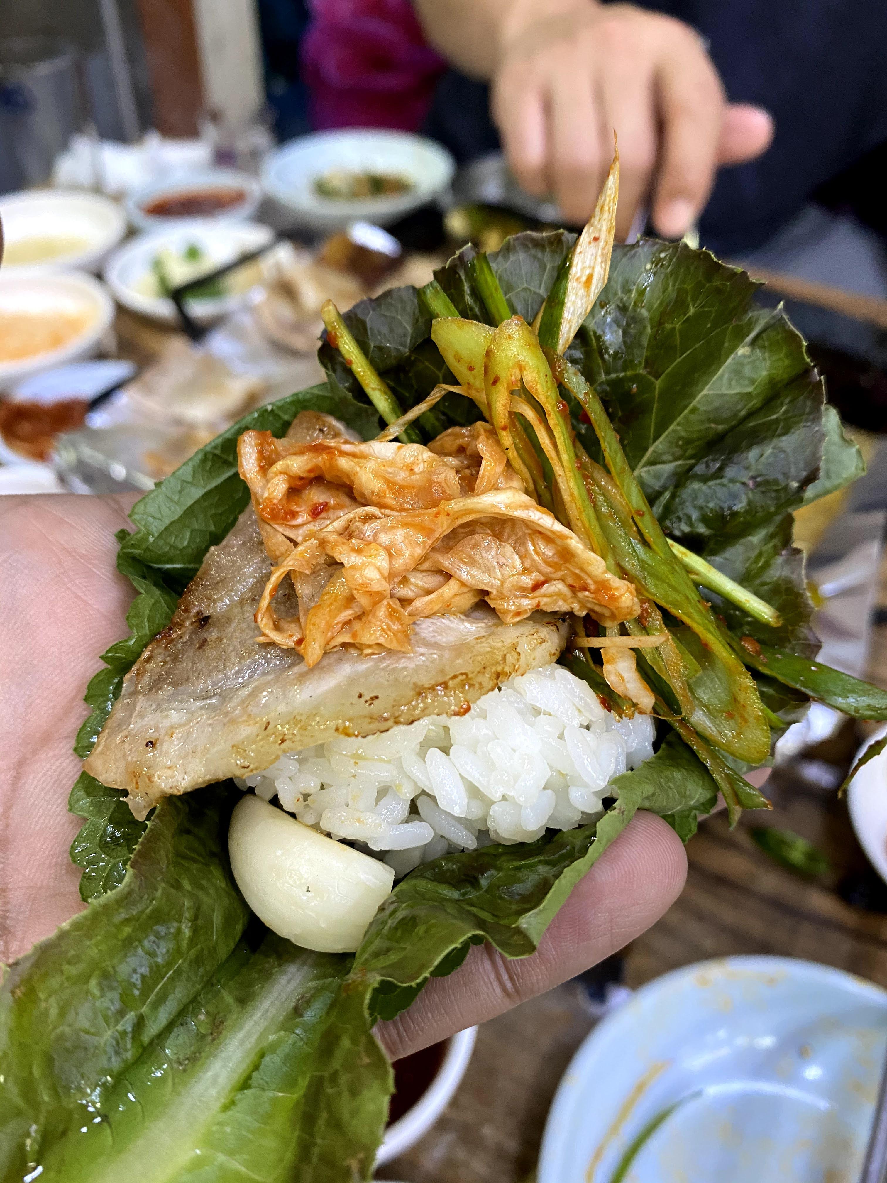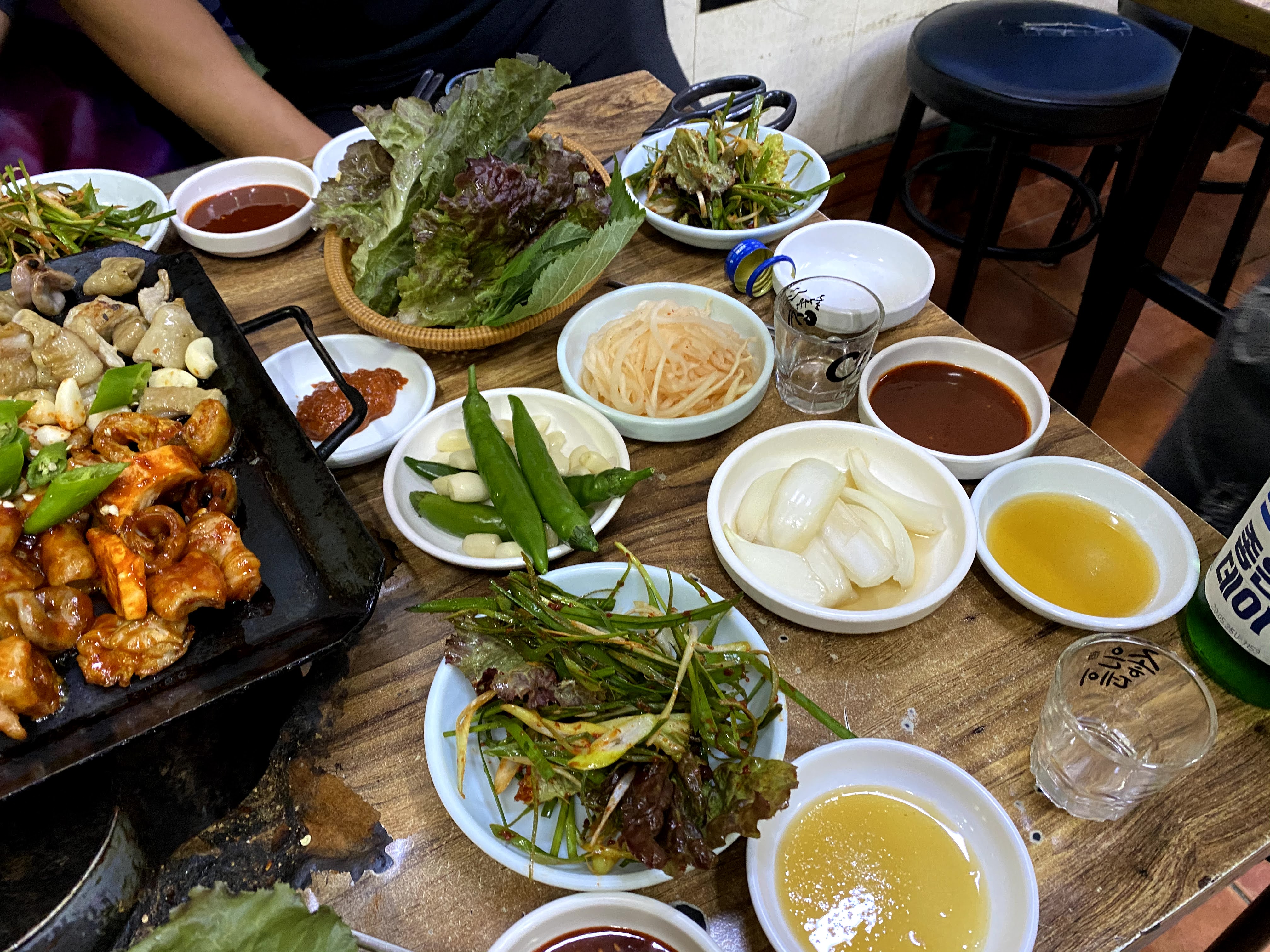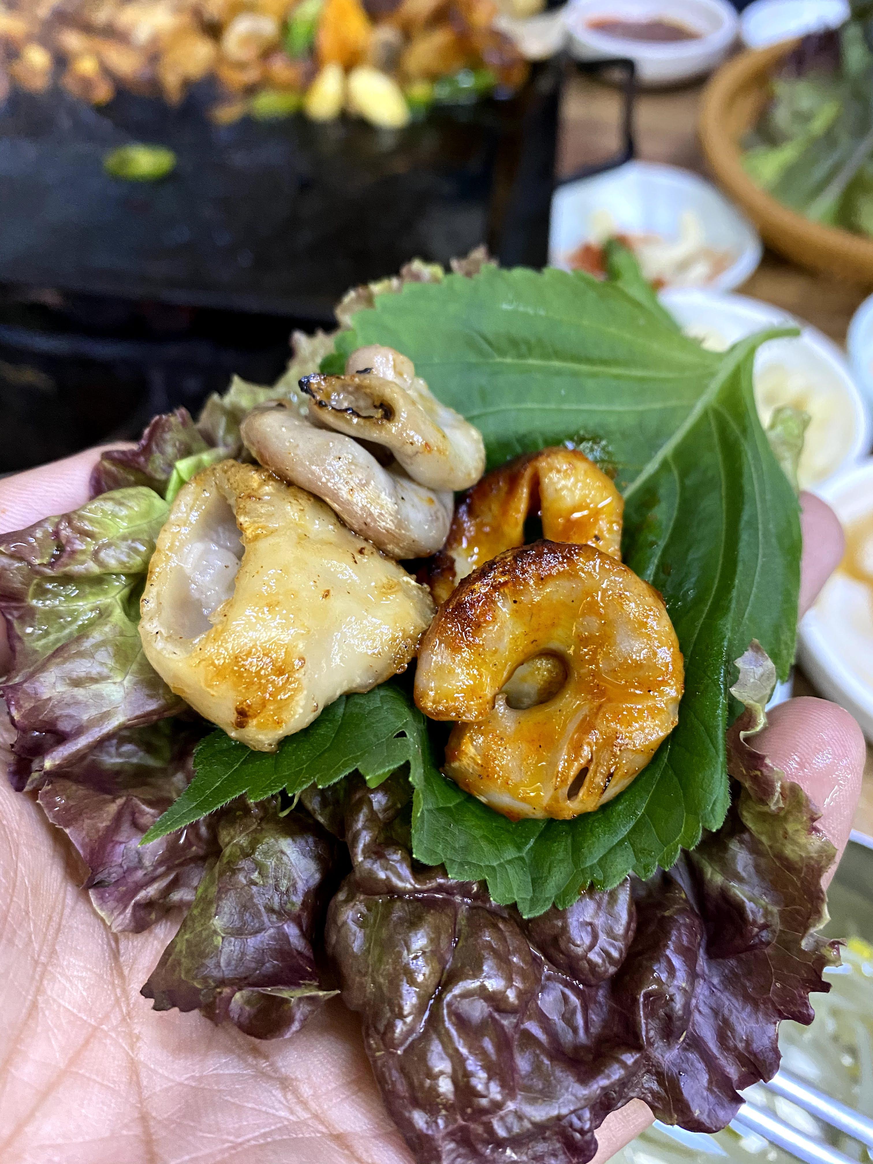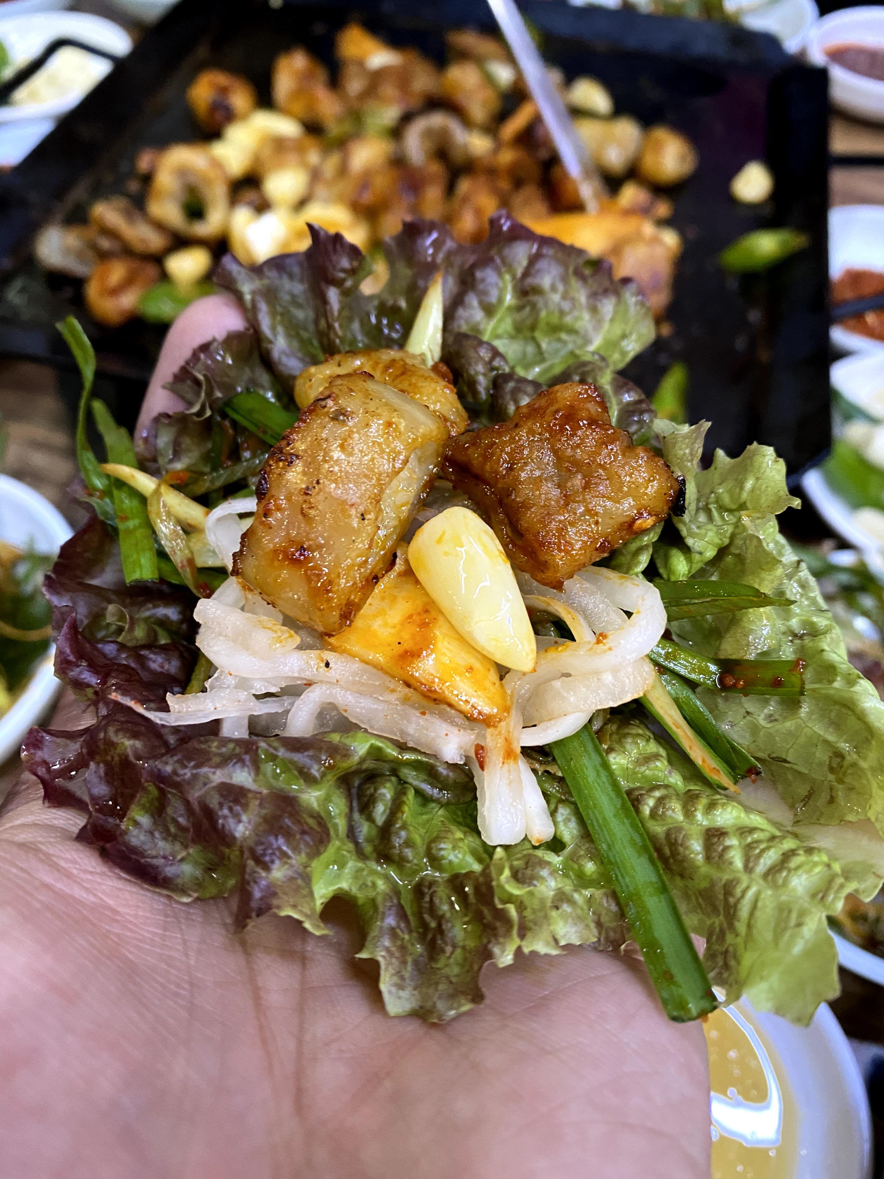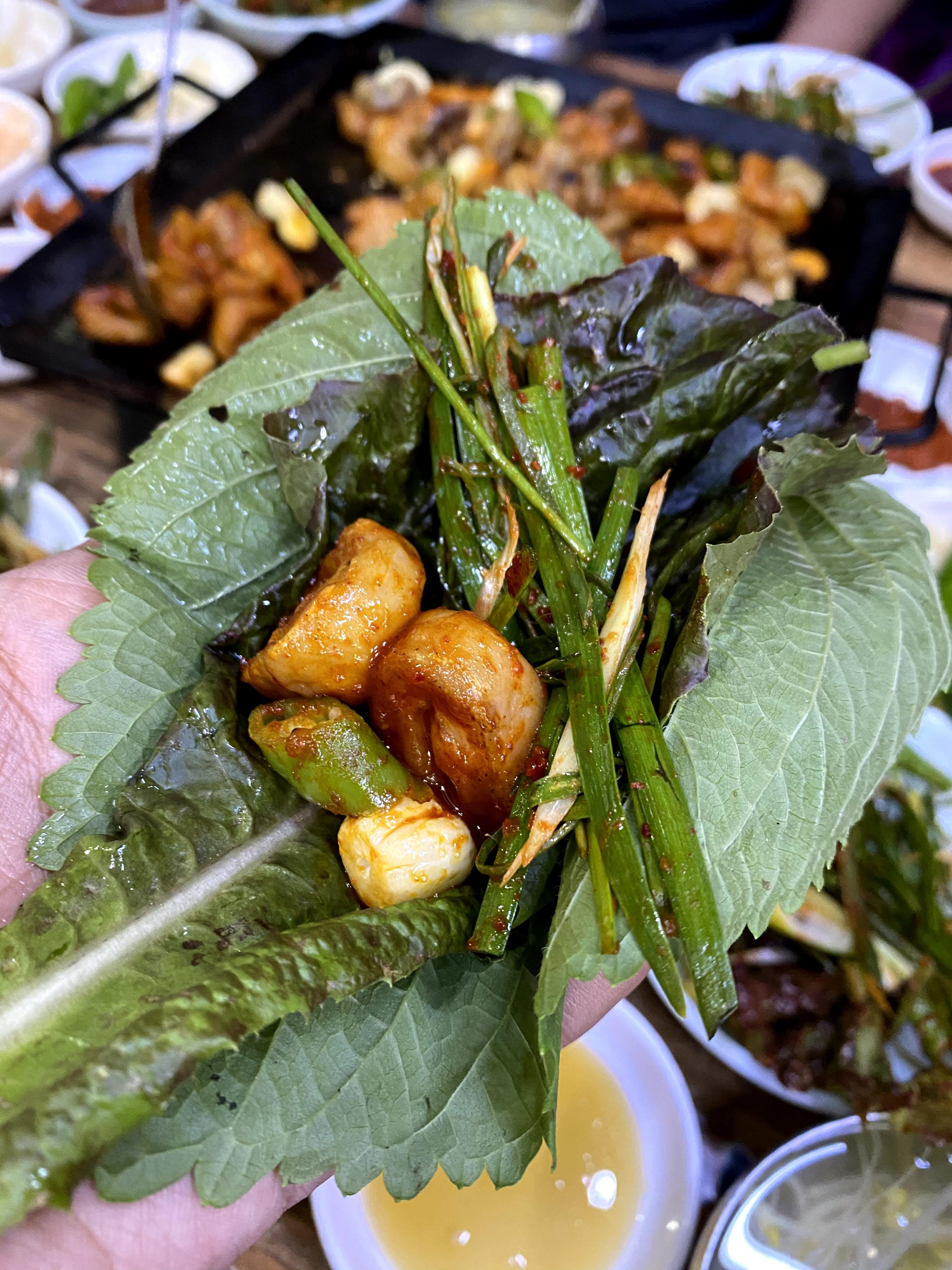 고기도 곱창도 이런 저런 재료를 올려 쌈을 싸먹는 맛이 있다.