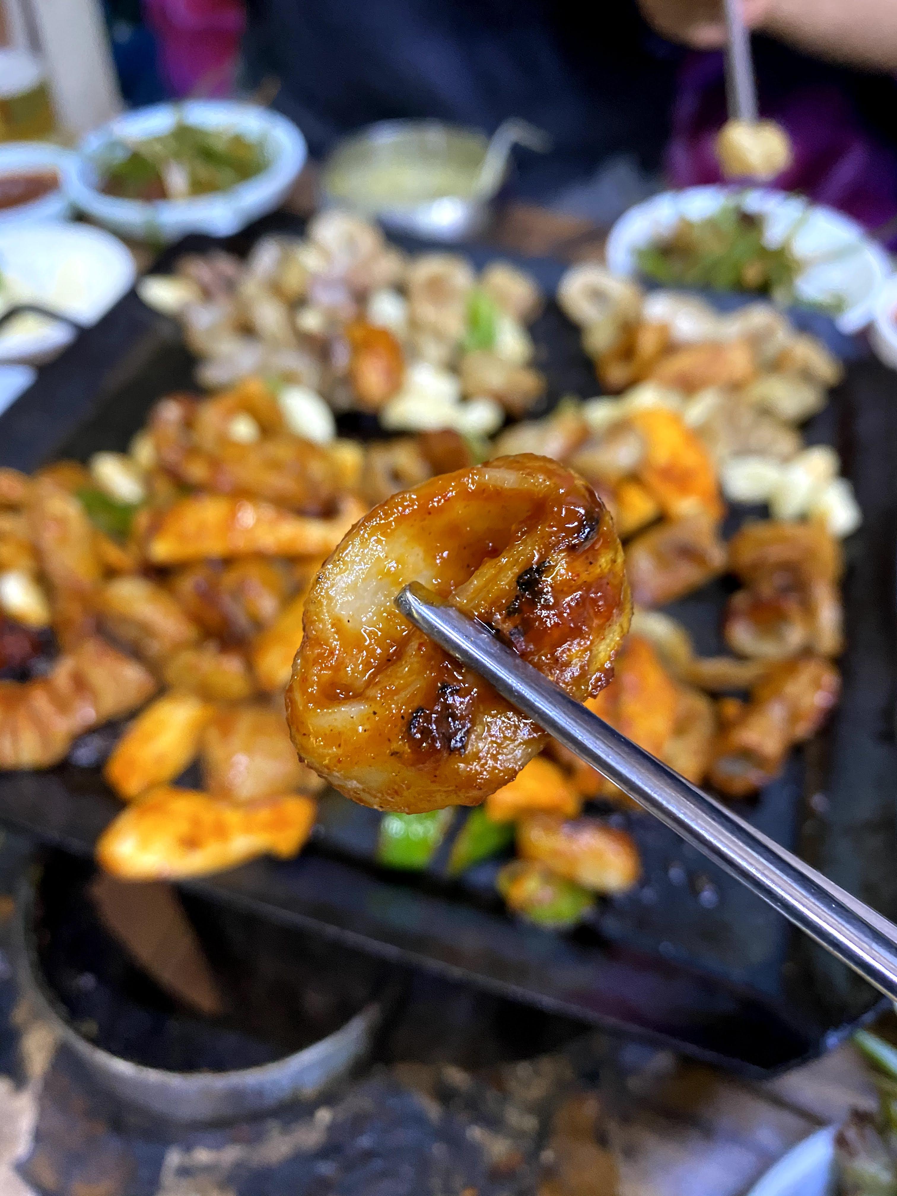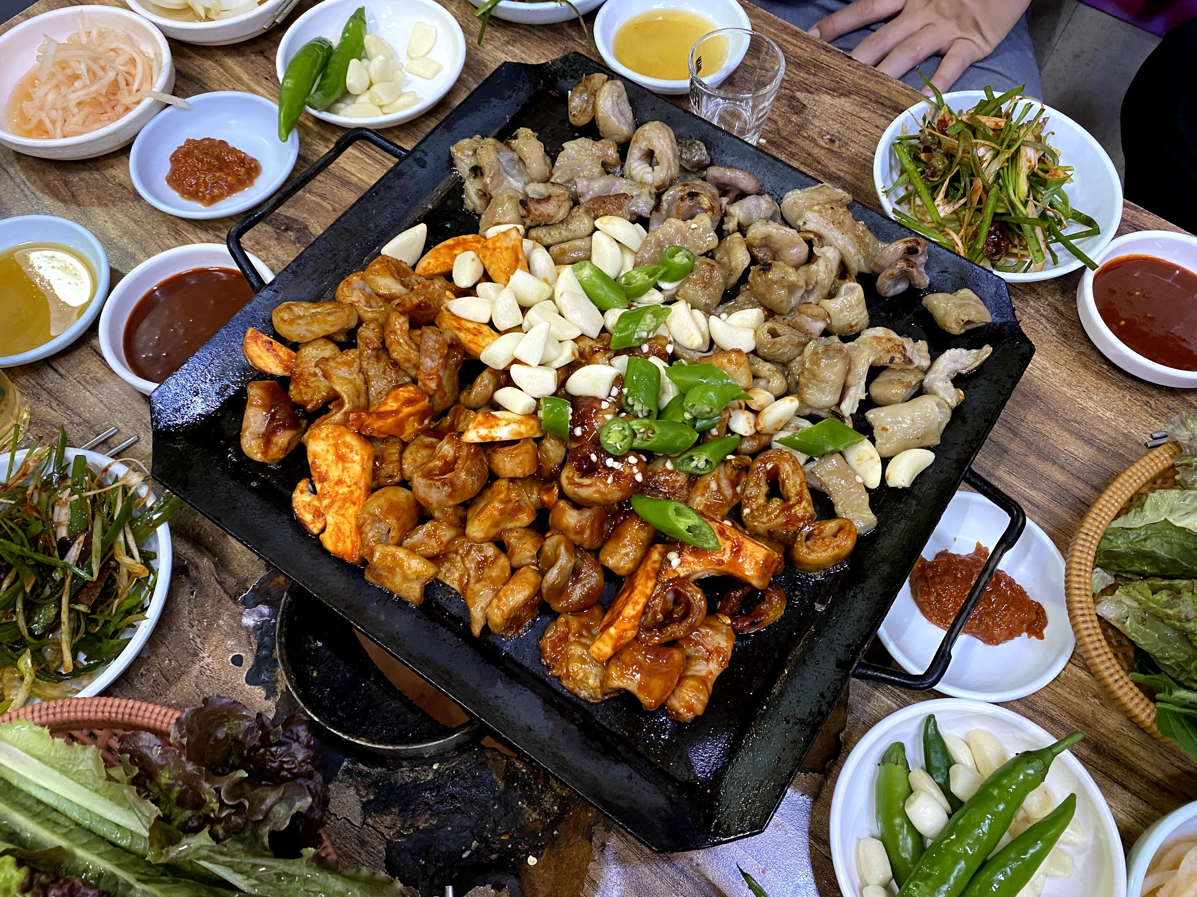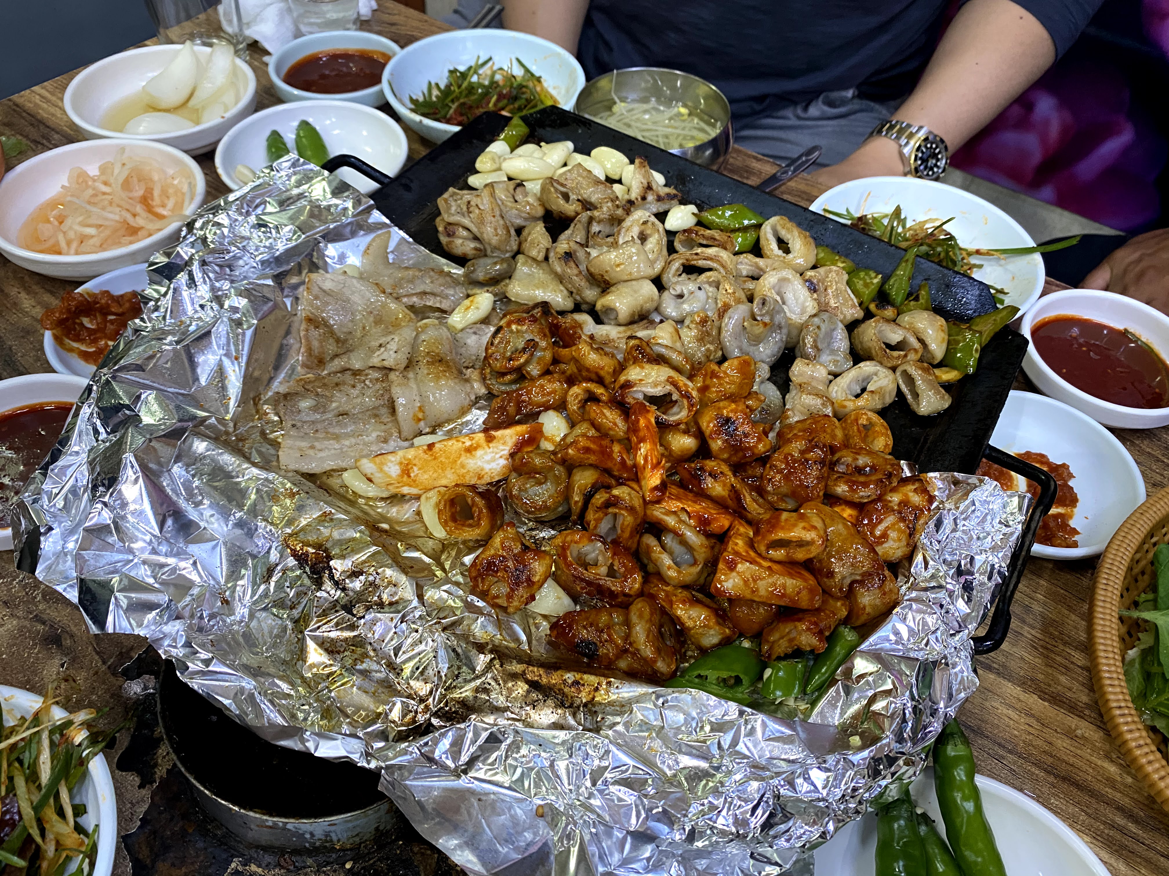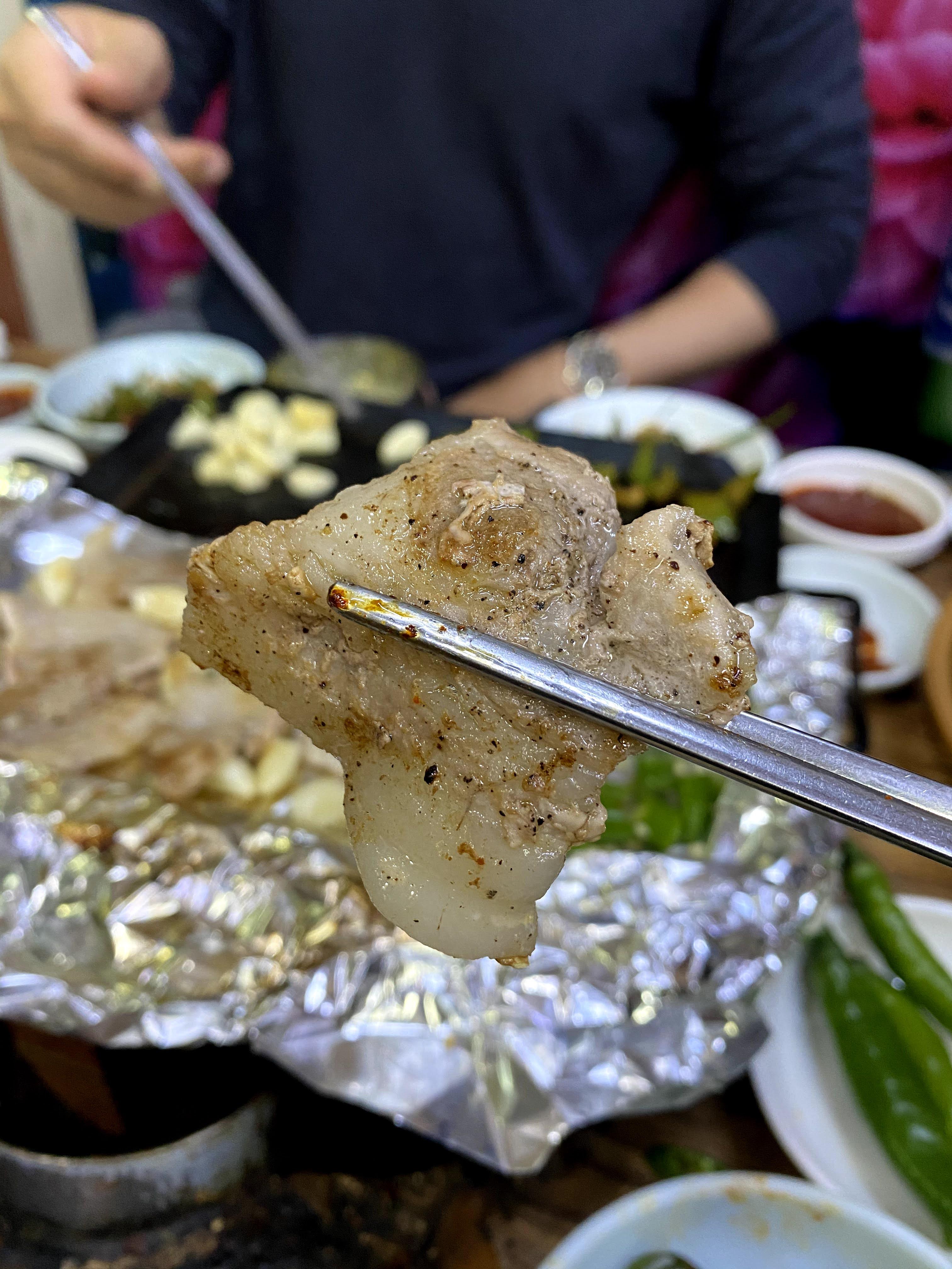 손님이 우리 테이블 밖에 없어 할머니가 한 방에 다 구워 주셨다.