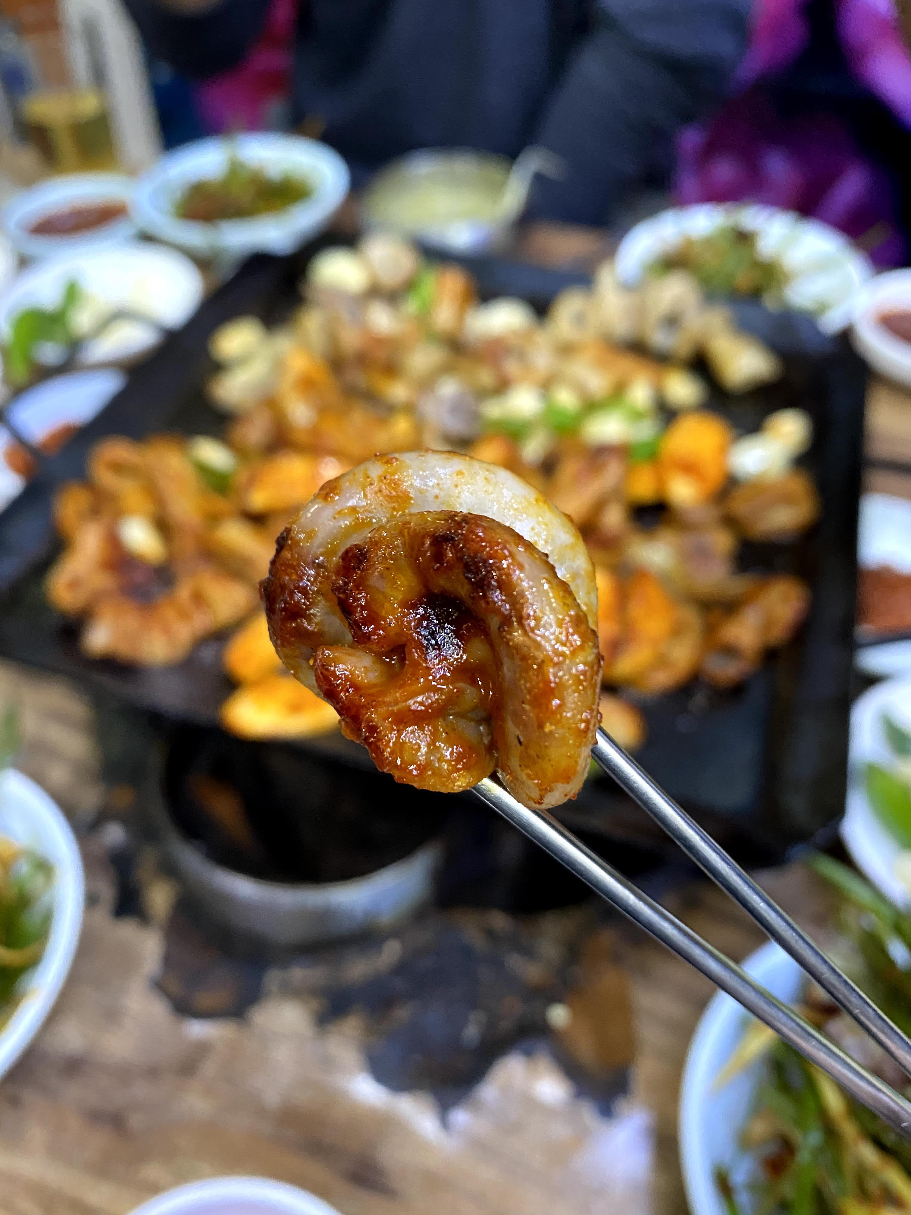 삼겹을 다 먹어가니 곱창도 잘 구워졌다.